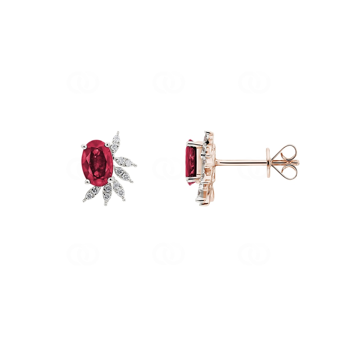 Clous d'oreilles or rosé 750/18 ct avec rubis ovale & diamants 0.08 ct H/si