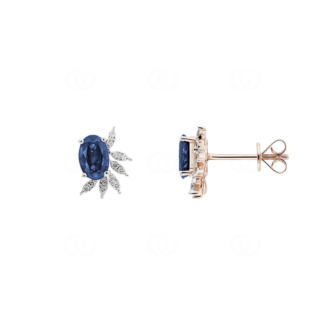 Clous d'oreilles or rosé 750/18 ct avec saphir ovale & diamants 0.08 ct H/si