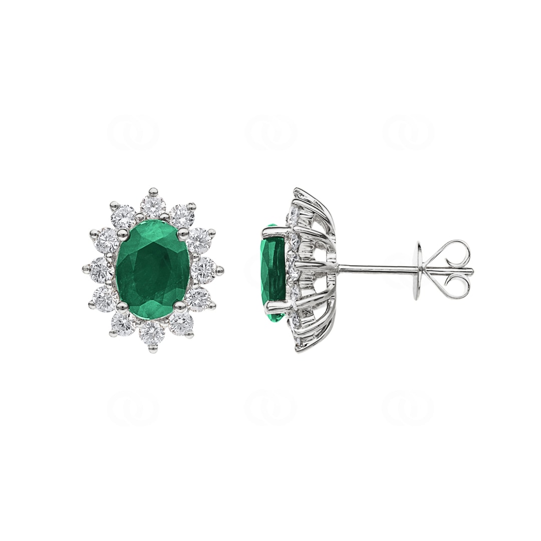 Clous d'oreilles or gris 750/18 ct avec émeraude ovale & diamants 0.81 ct H/si