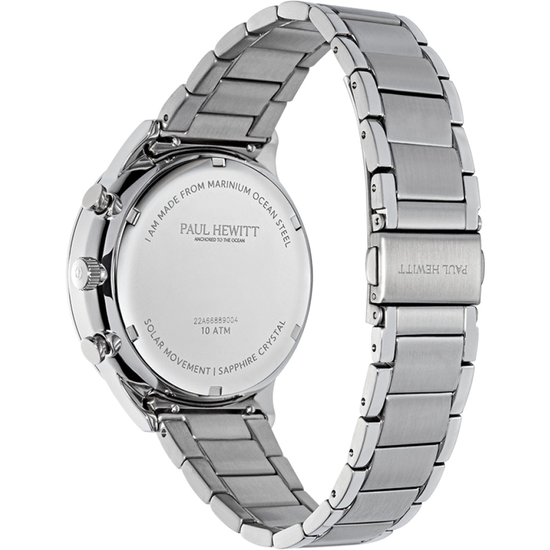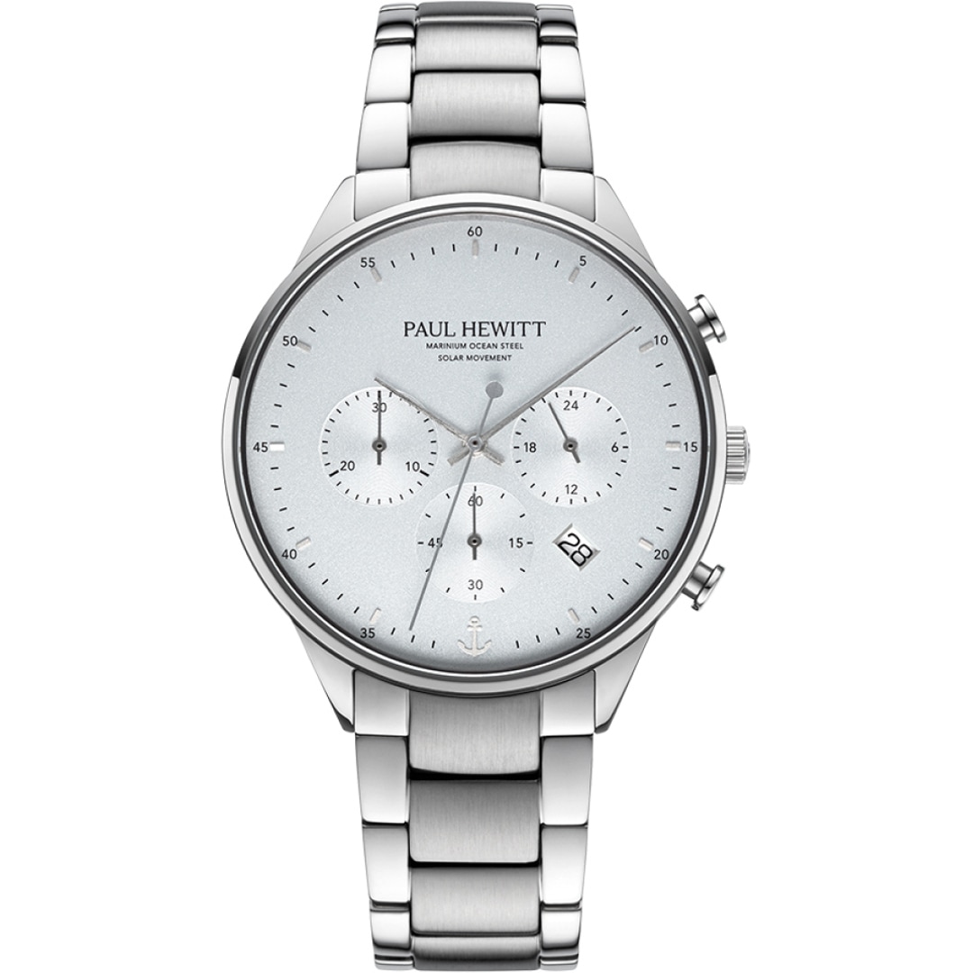 Ce chronographe saisissant et robuste de PAUL HEWITT s'inspire de l'idée de réduire une montre sportive pour homme à l'essentiel. Fabriqué en MARINIUM® Ocean Steel, le boîtier CHRONO de 42 mm est complété par des cadrans minimalistes et est équipé d'un puissant mouvement solaire EPSON avec une réserve de marche de plus de 6 mois.