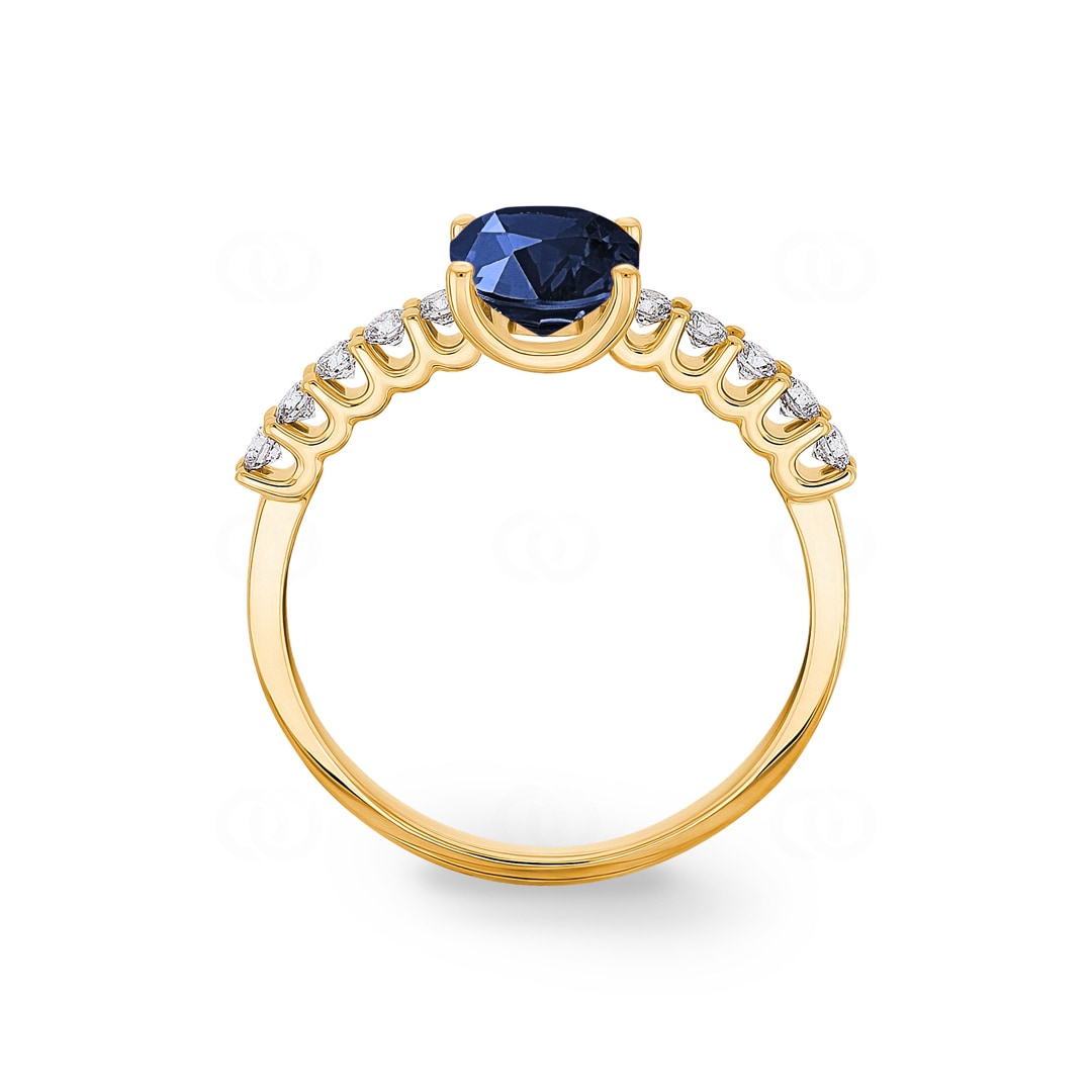 Le saphir est accompagné de dix diamants, sertis en relief sur le corps de bague. Cette ligne étincelante dirige inévitablement le regard vers le centre et forme un contraste brillant avec le ton chaud de l'or et le bleu sombre de la pierre principale. Une bague qui ne définit pas le luxe par l'ostentation, mais par une profondeur stylée – parfaite comme bague de fiançailles ou comme cadeau spécial d'une valeur durable.