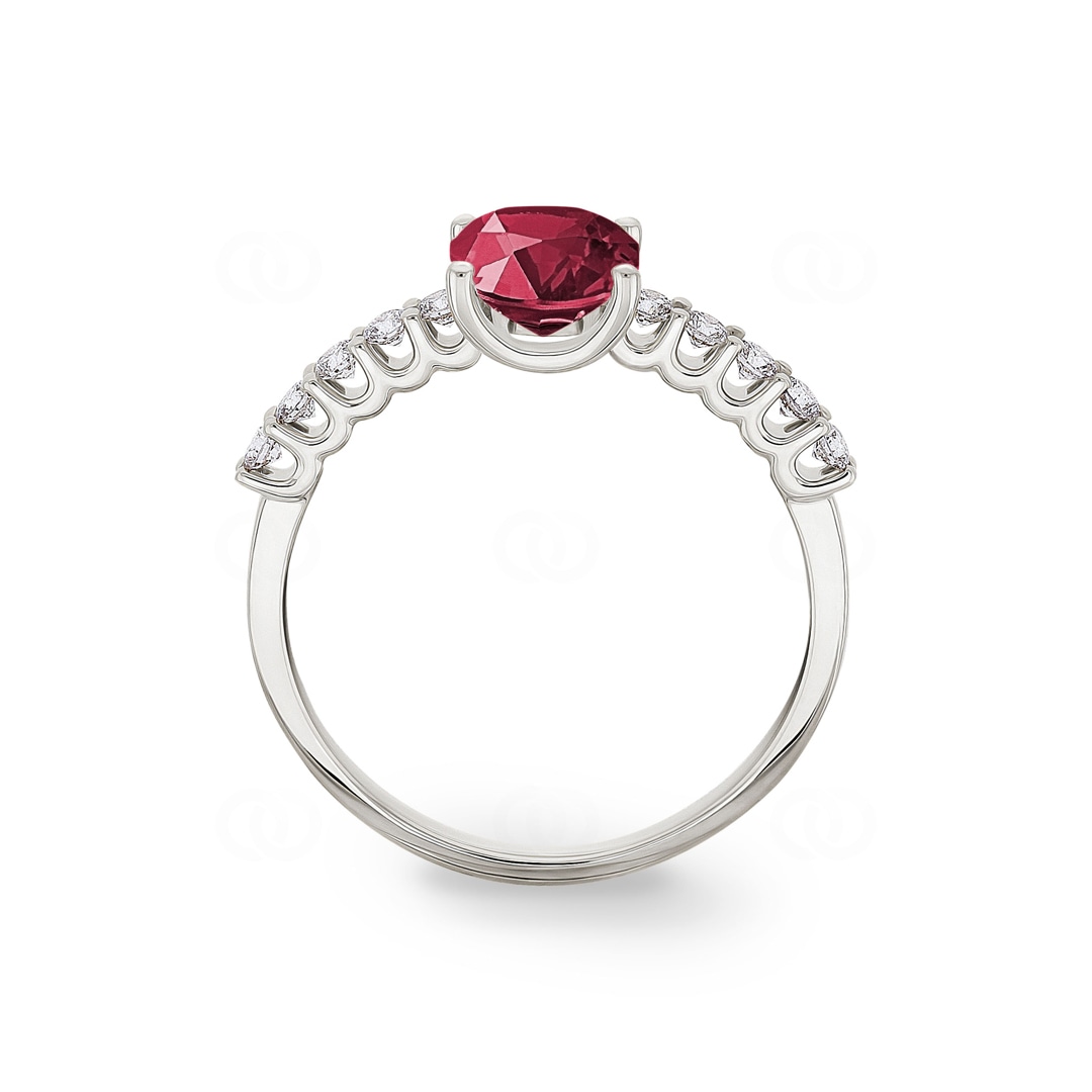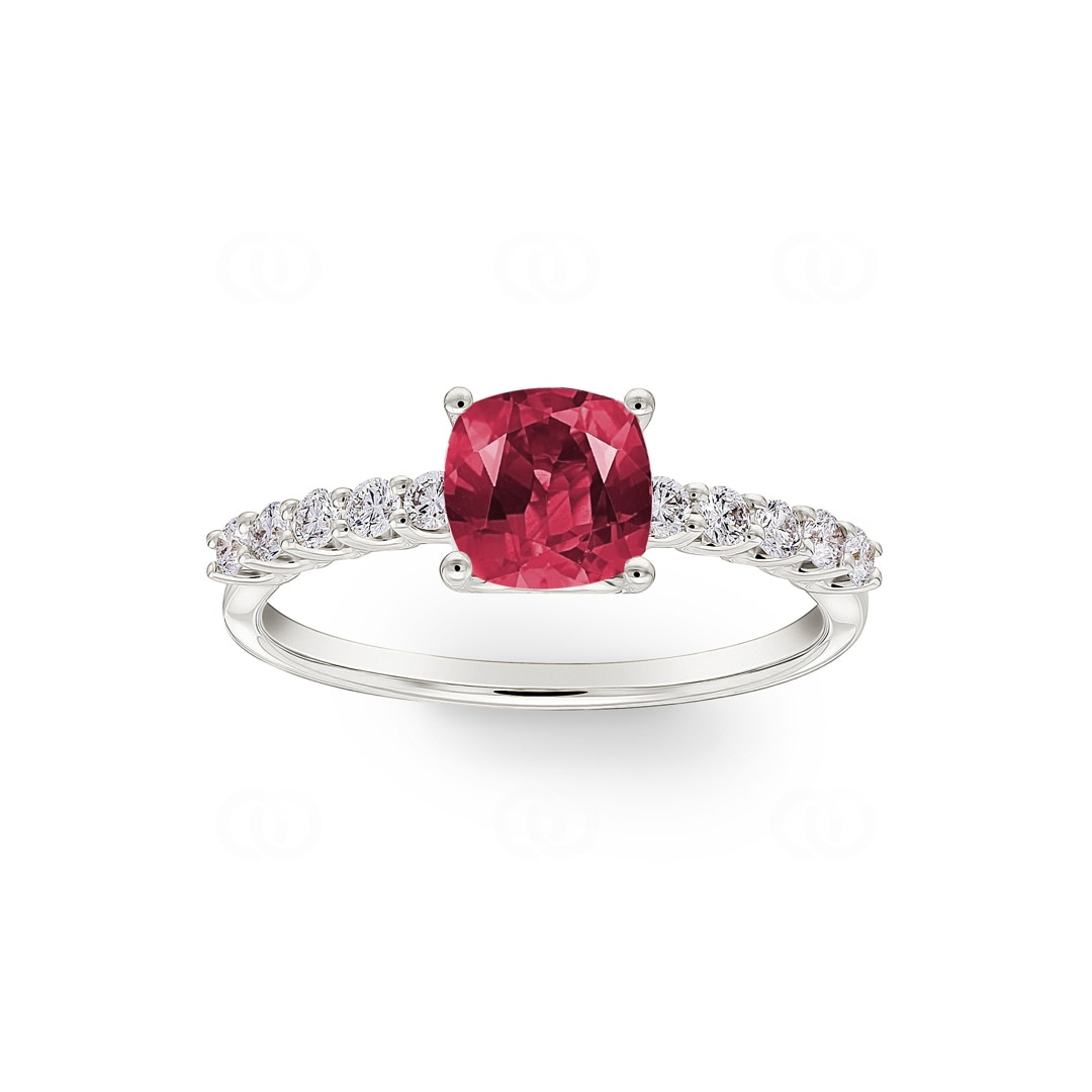 Bague solitaire pavé or gris 750/18 ct avec rubis & diamants 0.25 ct H/si