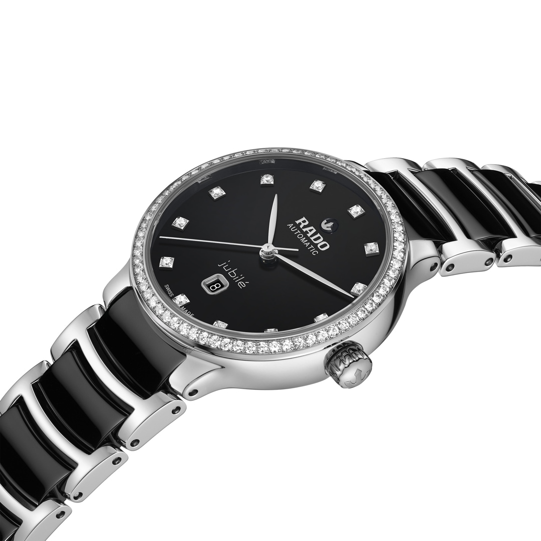 Au cœur de la montre bat le mouvement automatique R582 de haute précision, une merveille de technique dotée d'une réserve de marche de 48 heures, qui peut être admirée à travers le fond en verre saphir. Le design est parachevé par le bracelet innovant : une fusion élégante d'acier inoxydable poli et de céramique high-tech noire raffinée. La Centrix Superjubilé est plus qu'une montre – c'est une déclaration d'élégance intemporelle et de qualité sans compromis.