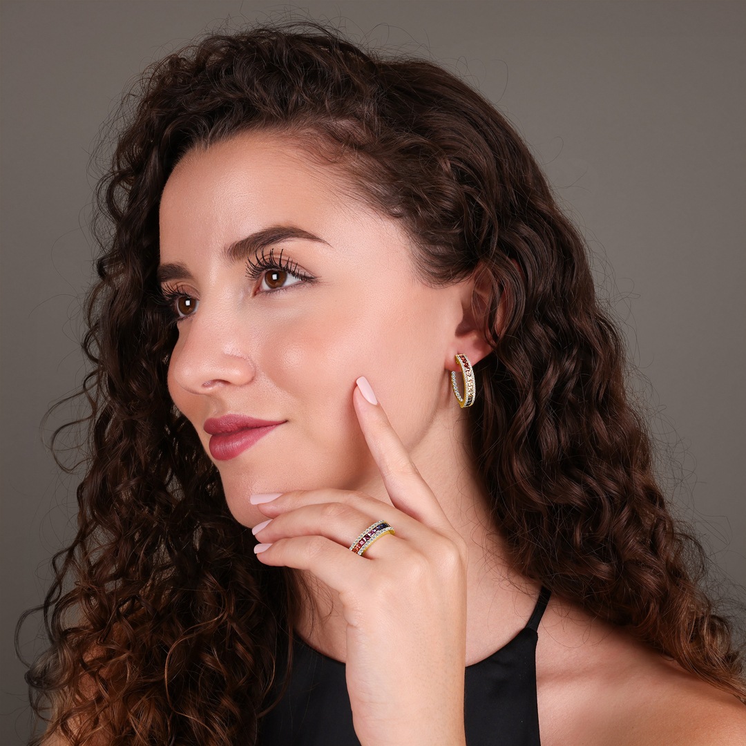 Plongez dans l'univers coloré avec ces ravissantes créoles Rainbow en or jaune 18 carats. Chaque créole est habilement sertie de 13 saphirs chauffés de taille princesse, chacun offrant une couleur unique. Rassemblés, ces saphirs créent un effet arc-en-ciel captivant qui attire le regard et égaye l'esprit. Les saphirs sont encadrés par un total de 72 diamants taille brillant, dont l'éclat souligne la beauté des pierres. Ces créoles vont au-delà du simple bijou : elles expriment le style et la joie de vivre, idéales pour ceux qui apprécient la couleur et le raffinement.