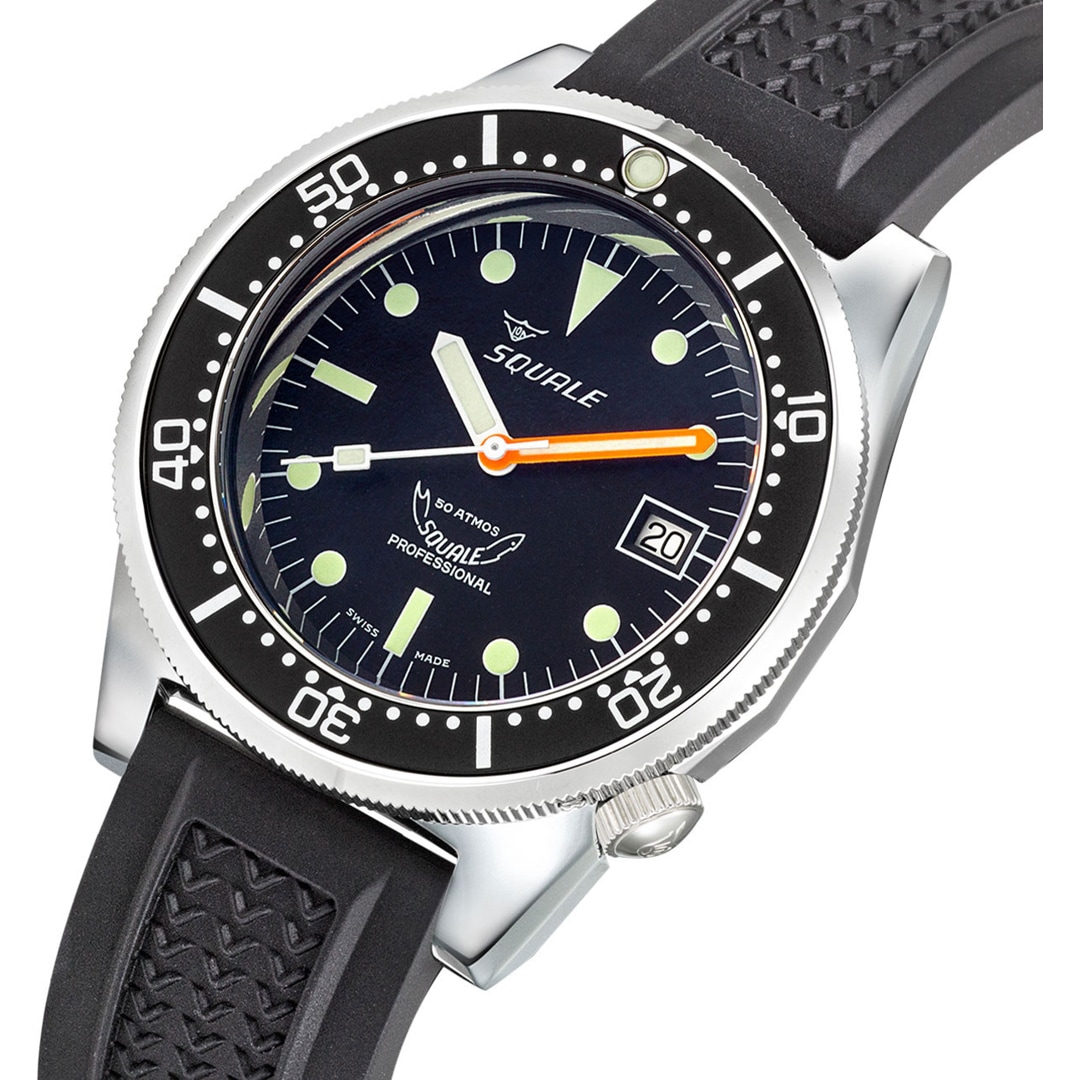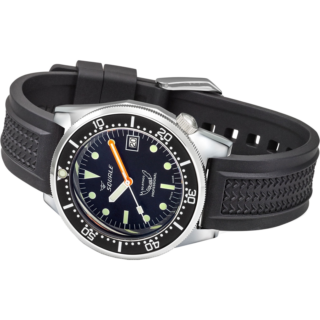Depuis 1959, Squale se façonne autour d'une passion profonde pour la mer et d'une expertise unique dans les instruments de plongée professionnels. À l'image du requin de son logo, ses garde-temps symbolisent la force et la fiabilité, des qualités pour lesquelles la marque est mondialement reconnue depuis plus de 60 ans. L'identité de Squale est indissociable du label "Swiss Made", synonyme d'une précision artisanale et d'une qualité exceptionnelles. En équipant des unités d'élite telles que la Marina Militare ou la Polizia Italiana, ces montres sont bien plus que de simples accessoires. Ce sont de véritables outils fonctionnels conçus pour les conditions extrêmes. Alliant héritage historique et innovation technique, Squale reste fidèle à sa mission : conquérir les profondeurs des océans en toute sécurité.