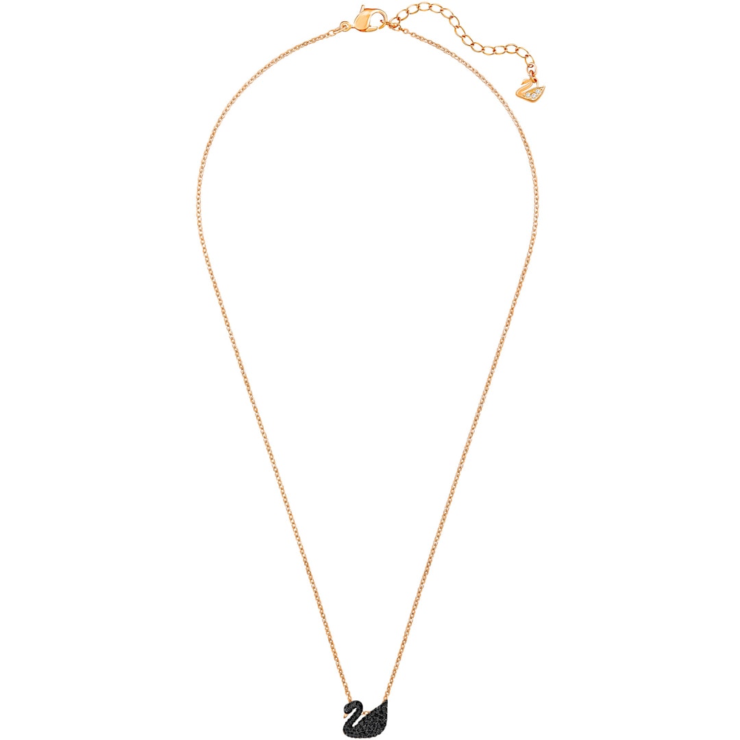 Version moderne d’un bijou emblématique, cet élégant pendentif en métal doré rose capture la grâce et l’élégance d’un cygne. Délicatement orné de cristaux noirs sertis pavé, il étincelle avec suffisamment de douceur pour rehausser toutes les tenues. Le pendentif mesure 1 x 1 cm et s’accompagne d’une chaîne en métal doré rose de 38 cm.