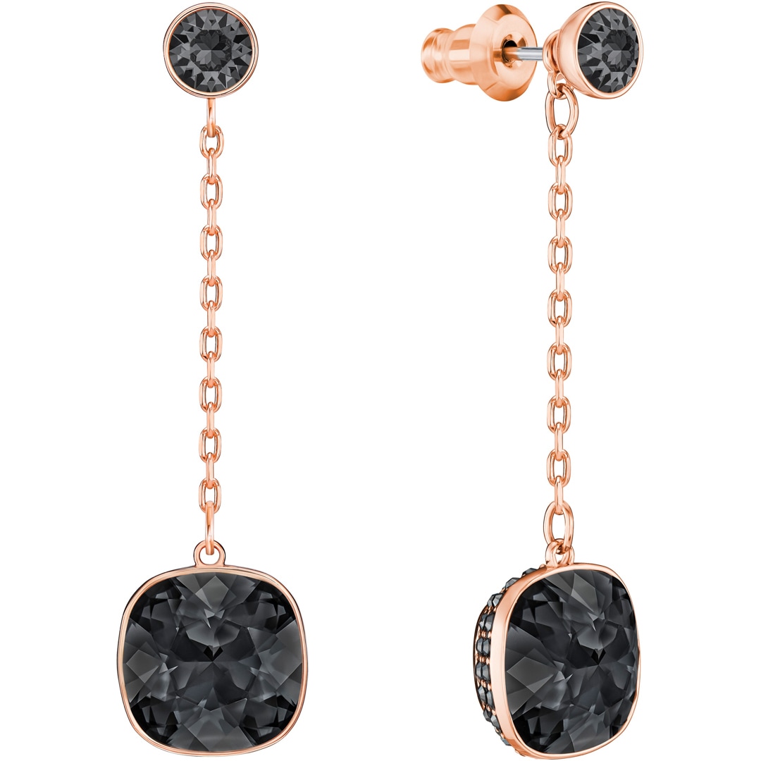 Jouez avec différents looks grâce à cette paire tendance de boucles d’oreilles chaînes qui peuvent se porter en simples clous ou en style asymétrique pour un glamour estival avant-gardiste. Associant du métal doré rose et du cristal noir serti pavé, le design polyvalent s’adapte facilement à toutes les occasions.