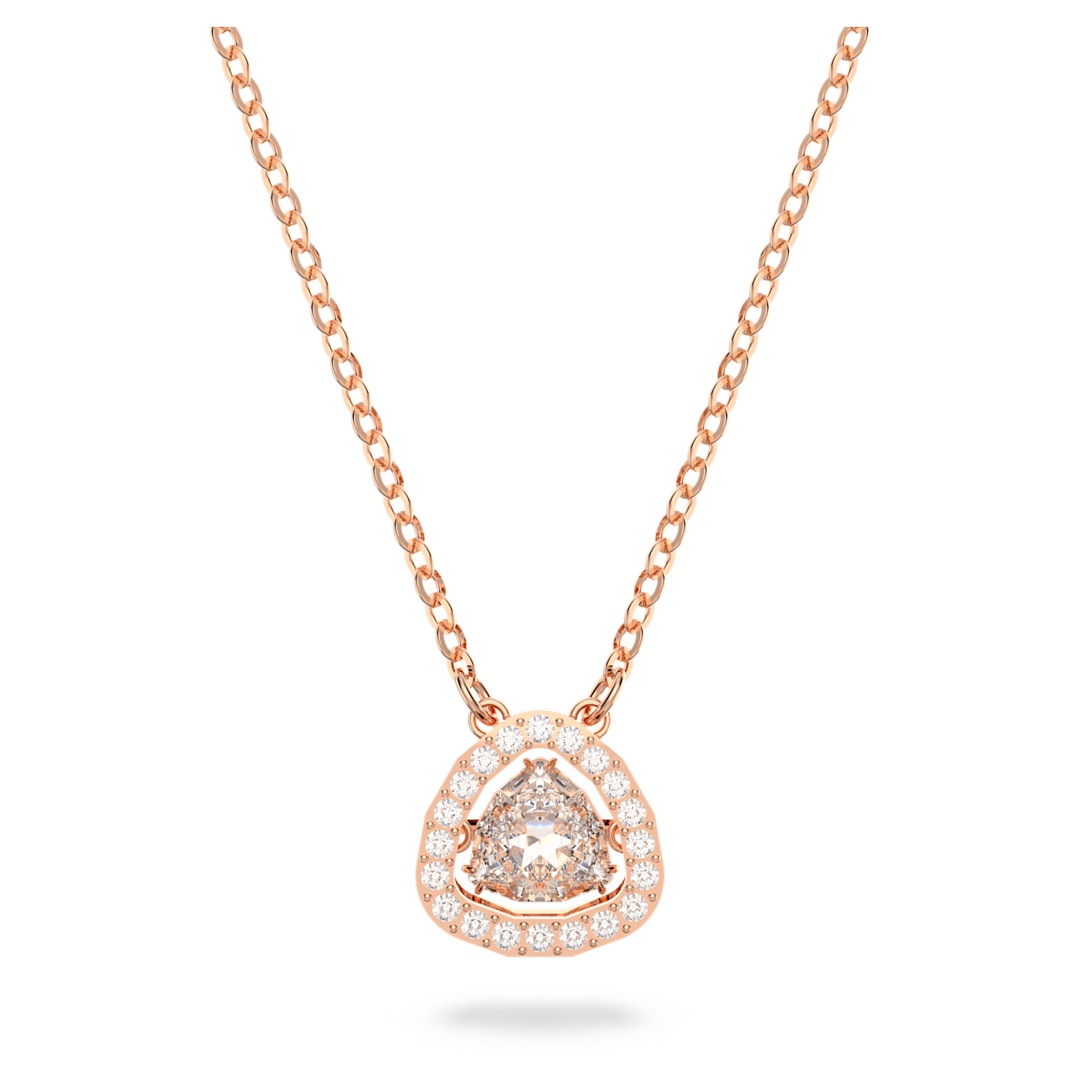 Ce collier intemporel fera des merveilles avec votre garde-robe quotidienne. Il arbore en son centre une magnifique pierre taille trillion, suspendue à une chaîne au placage de ton or rose et entourée d’un pavage étincelant. Un bijou à porter encore et encore : c’est le cadeau idéal à s’offrir ou pour un être cher.