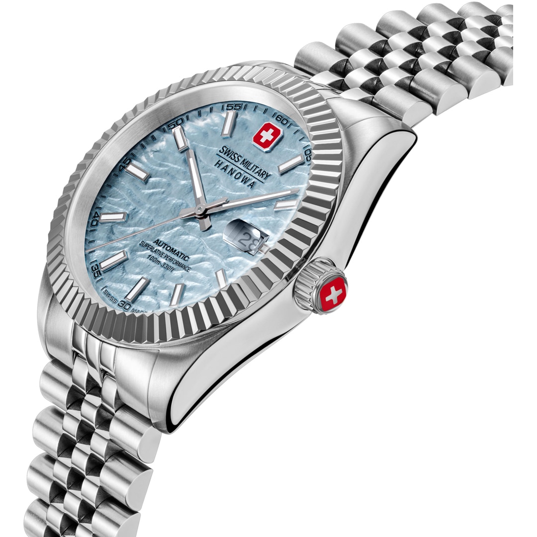 La Swiss Military Hanowa Diligenter allie technologie de pointe et design classique. Son boîtier en acier inoxydable de 41 mm met en valeur la « DILIGENTER AUTOMATIC », tandis que des détails raffinés, comme la texture de la lunette, lui confèrent une élégance unique. Côté technique, elle séduit avec un mouvement automatique suisse précis et une réserve de marche de 40 heures. Son bracelet confortable en fait un compagnon idéal, que ce soit pour le sport, les affaires ou les loisirs. Robuste et fiable, elle est étanche jusqu’à 10 ATM et dotée d’un verre saphir résistant aux rayures.