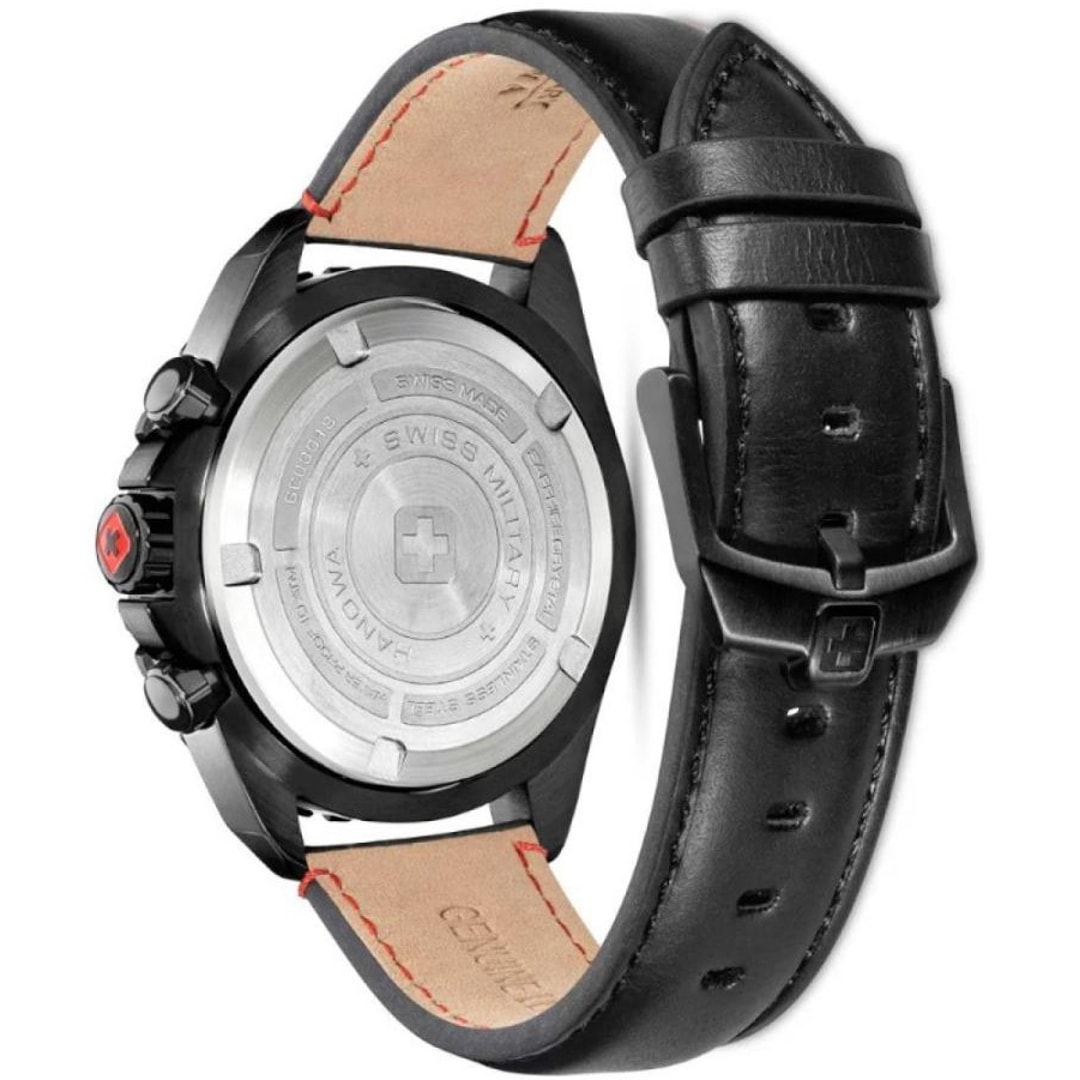 Affirmez votre style avec cette version orientée vers la performance du chronographe Swiss Military Hanowa Stone Marten. Le boîtier noir profond et le cadran structuré servent de scène à des accents rouge feu sur les aiguilles et les index, qui rayonnent d'une pure dynamique.