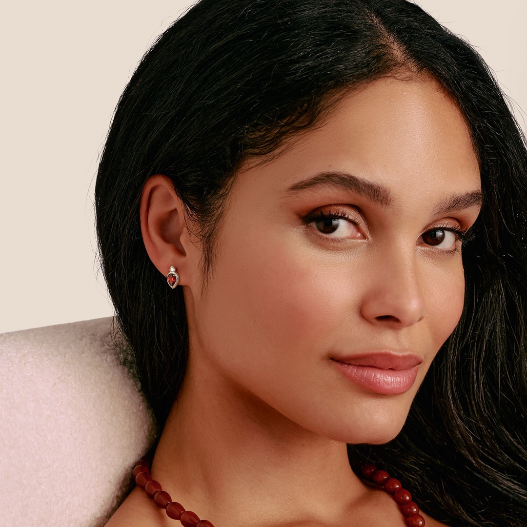 - Zirconias rouge grenat taillés en poire comme accent de couleur élégant.