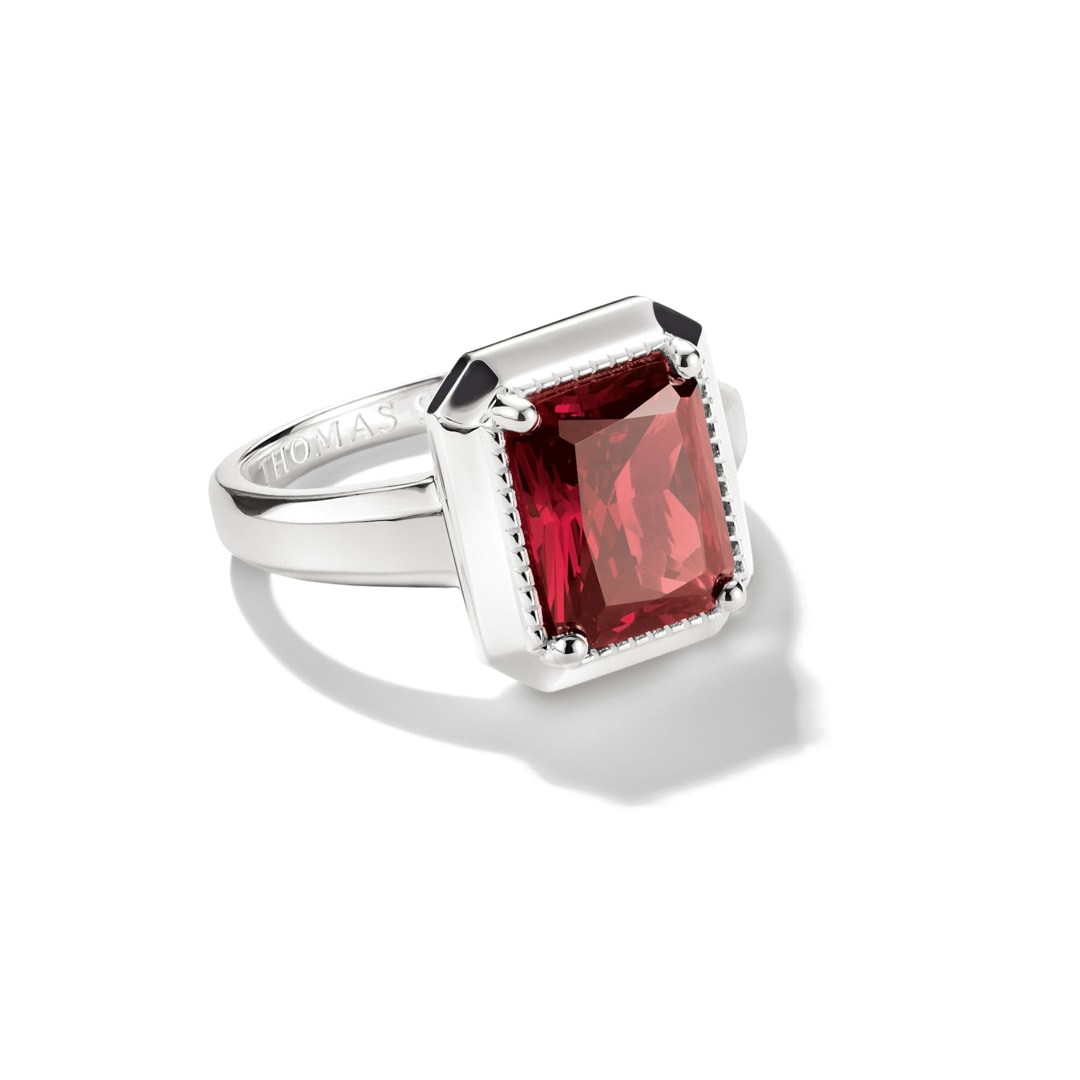 - Bague Elyndra en argent sterling 925 recyclé avec zircone rouge grenat en taille octogonale