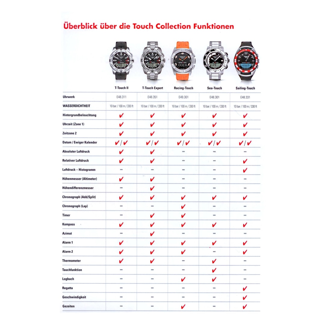 - J'ai commandé la montre T Touch pour mon mari. Il aime beaucoup l’horloge avec ses nombreuses fonctions faciles à utiliser. L'affaire s'adapte parfaitement à son poignet plutôt étroit. Le poids léger est très similaire à ce que nous pensons qu'il est en titane. Un grand compliment pour votre équipe, qui est très courtois et serviable. Nous allons commander à nouveau chez vous. (Posté le 01.09.2016)