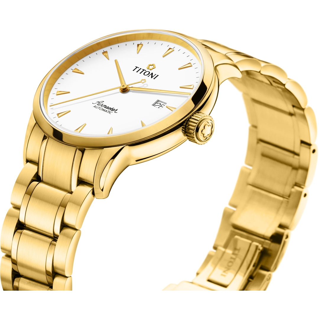 Depuis 1919, l'entreprise familiale Titoni allie avec élégance le savoir-faire horloger traditionnel aux dernières avancées technologiques et vise toujours la perfection dans ses créations. L'essence des montres swiss made Titoni réside dans l'attention portée aux détails. Titoni, l'une des rares entreprises horlogères familiales indépendantes de Suisse, incarne cette constance. Depuis plusieurs générations, la famille Schluep a tracé sa voie, chacune avec une vision à long terme pour assurer la stabilité et la longévité de l'entreprise. Depuis 2022, la quatrième génération perpétue fièrement cet héritage.