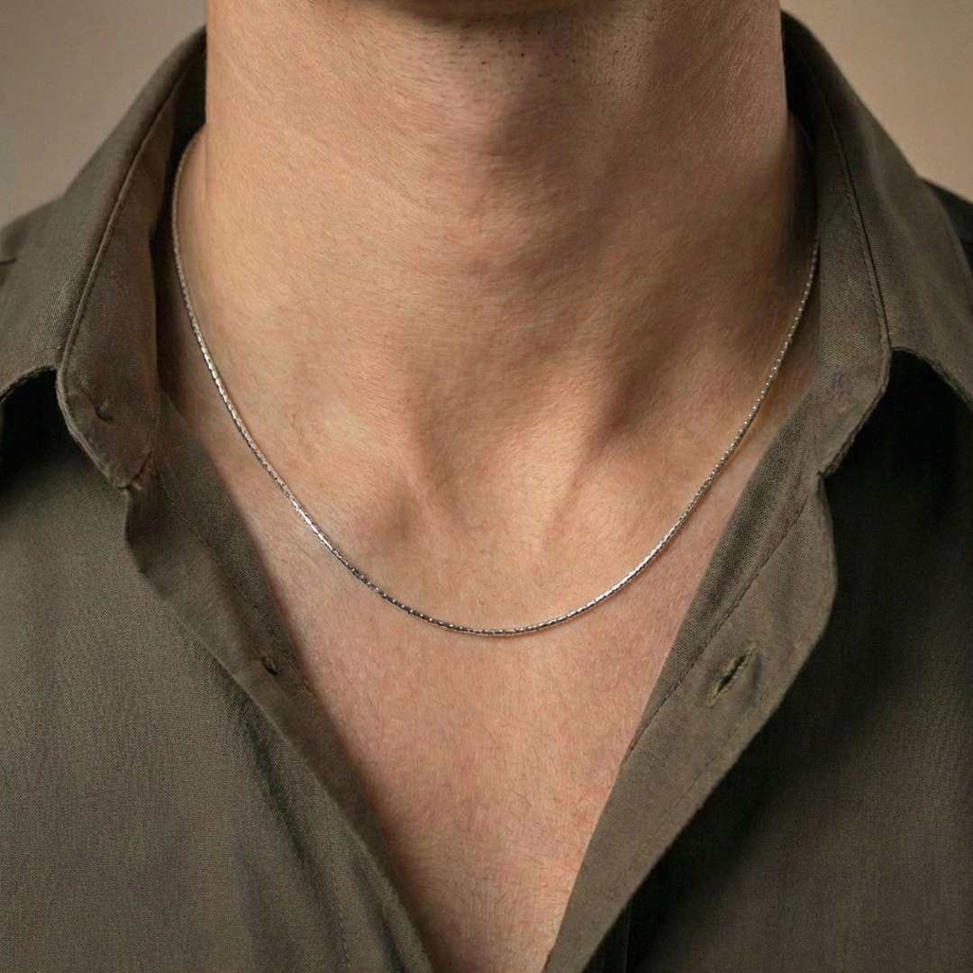 Cette chaîne vénitienne, ronde, en or gris 18 carats est d'une largeur de 1,0 mm. La chaîne est disponible en 5 longueurs entre 38 et 50cm et dispose d'un fermoir mousqueton qui permet de la fermer en toute sécurité. Ce bijou sobre et intemporel est l'accessoire parfait pour toutes les tenues.