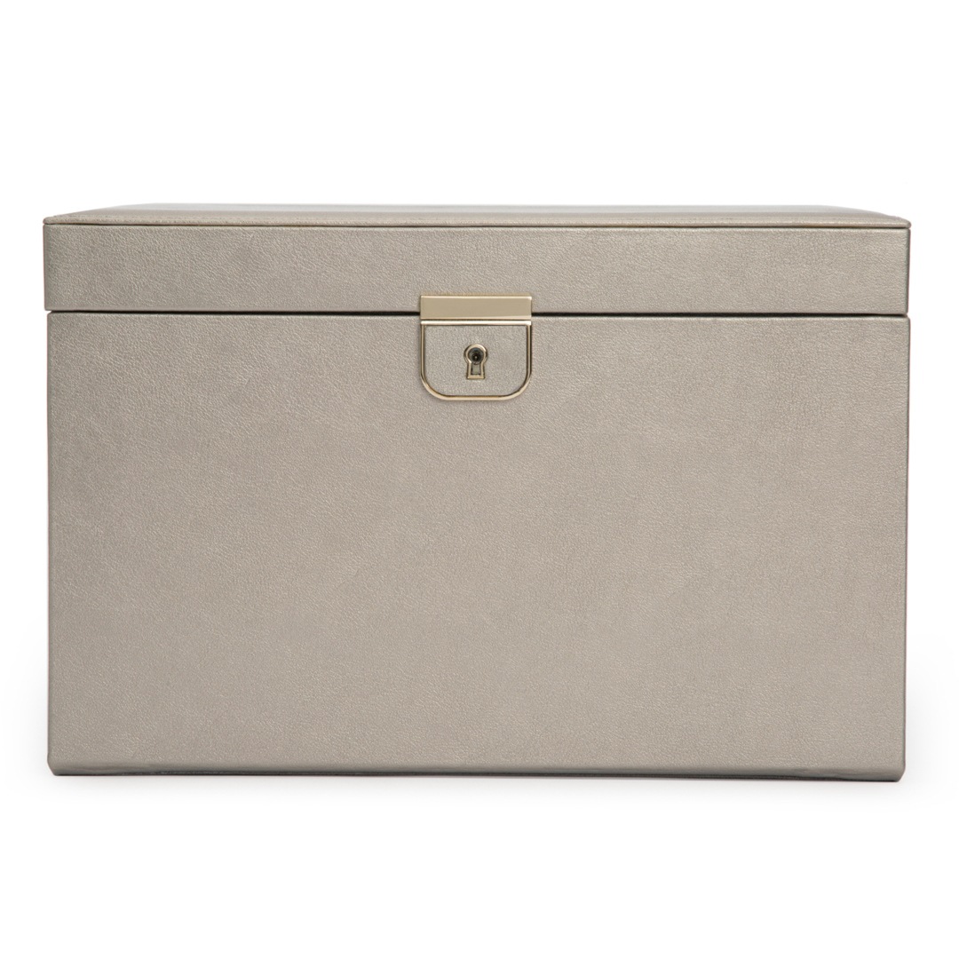 À la fois charmante et sophistiquée, la collection Palermo s’inspire de la ville éponyme, perchée entre montagne et mer. Revêtue d’un cuir somptueux et dotée de détails dorés raffinés, la Palermo Boîte à Bijoux Grande met en valeur vos bijoux tout en les protégeant. Elle est équipée d’une doublure anti-ternissement LusterLoc™ ainsi que d’une serrure avec clé à finition dorée.