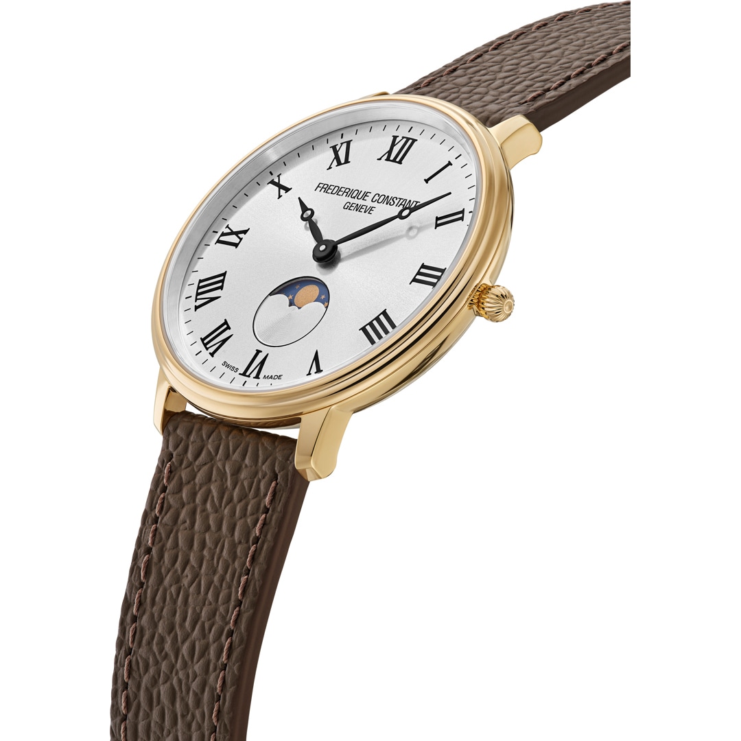 Die Frederique Constant Classics Moonphase verkörpert raffinierte Schlichtheit und höchsten Tragekomfort. Ihr schlankes Design schmiegt sich harmonisch an das Handgelenk und unterstreicht stilvolle Zurückhaltung mit moderner Klasse. Diese Kollektion steht ganz im Zeichen der Philosophie von Frederique Constant: Schweizer Uhrmacherkunst auf höchstem Niveau zugänglich zu machen – für alle, die zeitlose Eleganz zu schätzen wissen.