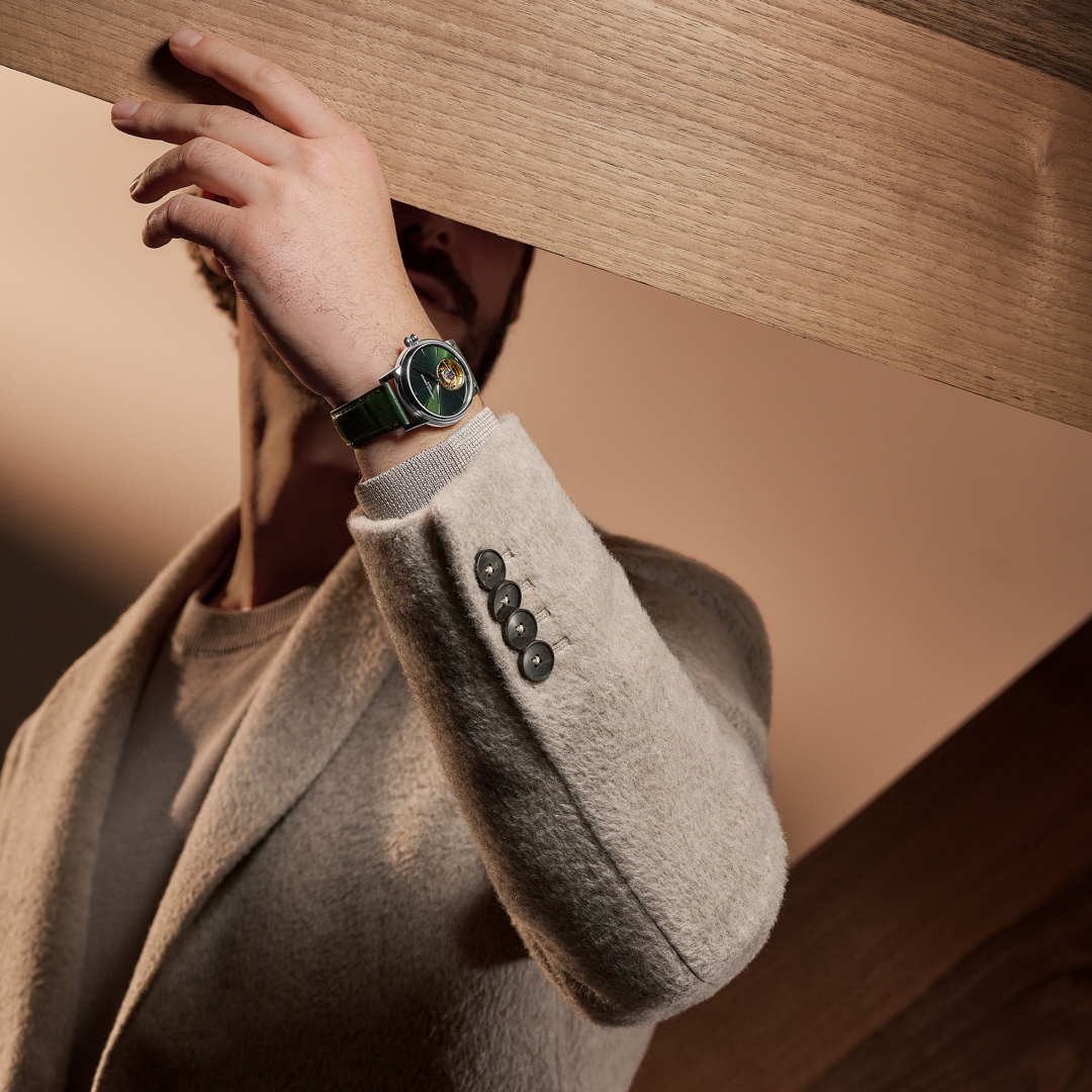 2025 stellt Frédérique Constant eine neue Ausgabe seiner klassischen Classic Tourbillon Manufacture vor, die sich noch stark an ihren Vorgängern von 2023 orientiert. Eine Kreation in limitierter Auflage zu 150 Exemplaren, versehen mit einem 39 mm breiten Stahlgehäuse sowie einem Zifferblatt und einem Armband ganz in Grün. Im Inneren schlägt das Manufakturwerk FC-980 mit Automatikaufzug, das vollständig intern entwickelt und zusammengebaut wurde. Dieses Modell verbindet die traditionelle Luxusuhrmacherei geschickt mit der Moderne, die in einem dynamischen und grünen strahlenförmigen Zifferblatt auf der Höhe unserer Zeit zum Ausdruck kommt.