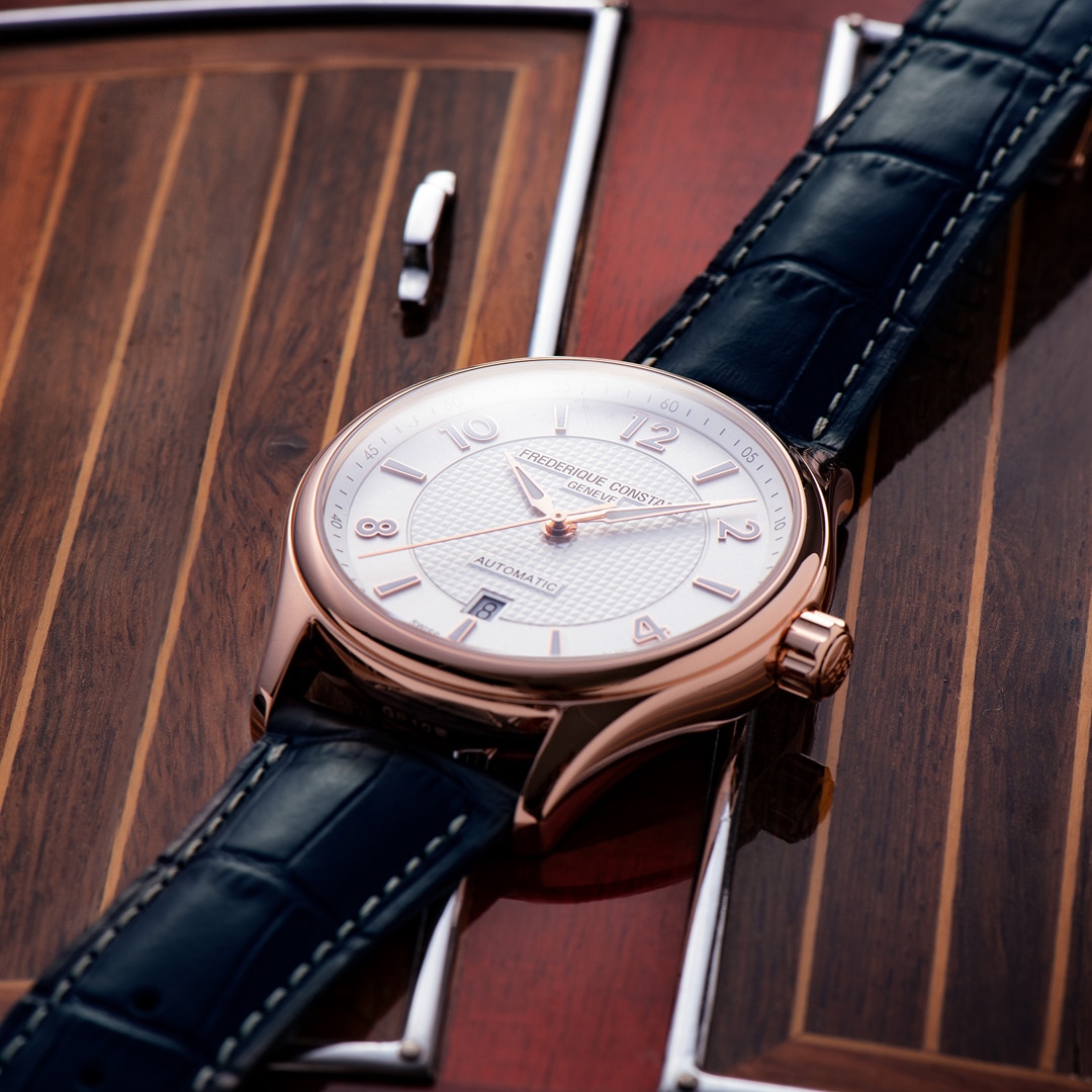 Seit 2009 feiert die Schweizer Uhrenmanufaktur Frederique Constant die legendären Runabout-Yachten der Goldenen Zwanzigerjahre mit einer attraktiven Uhrenserie in limitierter Auflage mit dem Namen „Runabout“. Spiegelblank poliertes Holz, blitzendes Chrom und glitzerndes Glas – dies sind die Elemente, aus denen die Runabout-Boote bestehen, bei deren Entwurf die Ingenieure das Ziel verfolgten, ein zeitloses Design zu entwickeln, das niemals aus der Mode kommen würde. Und sie schafften es. Noch heute sind die atemberaubend eleganten Boote auf den schönsten Gewässern der Welt zu bewundern, und viele von ihnen geben sich bei von Frederique Constant organisierten Veranstaltungen die Ehre. Die neue Runabout Automatic wird in einer streng limitierten Auflage von 888 Stück produziert und wird in einer speziellen Geschenkbox mit einer entzückenden Miniatur einer legendären Runabout-Yacht geliefert.