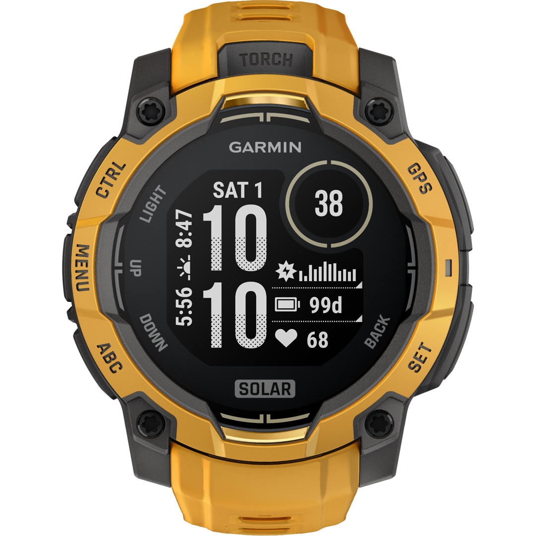 Folge deinem Instinkt, lebe deinen Style! Diese Multisport-Smartwatch ist dein tougher Begleiter. Ihr robustes Design mit metallverstärkter Lünette und kratzfestem Glas begleitet dich bei jedem Abenteuer. Mit unendlicher Akkupower dank Solartechnologie musst du dir keine Gedanken mehr über das Aufladen machen. Behalte mit der integrierten LED-Taschenlampe auch im Dunkeln den Überblick. Orientiere dich mit ABC-Sensoren und erhalte präzise Daten bei der Aufzeichnung deiner Aktivitäten mit neuester SatIQ -Technologie. Wenn du beim Laufen, Radfahren oder Snowboarden neue Ziele erreichen möchtest, unterstützen dich zahlreiche Funktionen und Apps – zudem ist die Instinct 3 bis 10 ATM wasserdicht. Was immer du vorhast: Deine Gesundheit behältst du im Blick – dank 24h-Herzfrequenzmessung, Stresslevel, erweiterter Schlafanalyse und vielem mehr. Im Alltag begleiten dich viele smarte Features, z. B. beim kontaktlosen Bezahlen. Und mit Benachrichtigungen am Handgelenk bleibst du immer up-to-date.