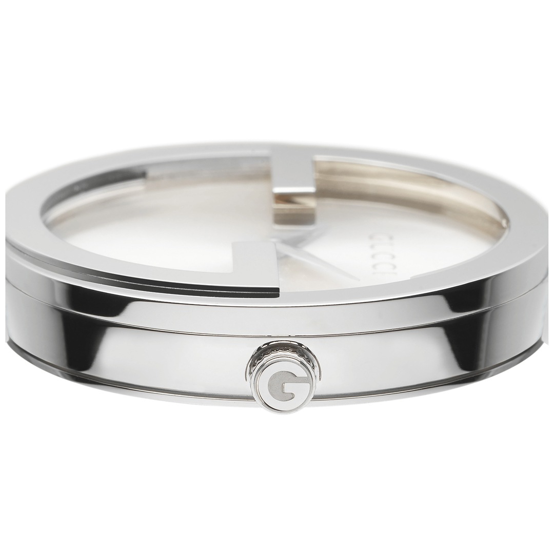 Die von Creative Director Frida Giannini entworfene Interlocking Uhrenkollektion wird von einem der berühmtesten Markensymbole des Hauses Gucci geziert: den beiden ineinandergreifenden „G“s, die zum ersten Mal in den 1960er Jahren verwendet wurden und für die Initialen des Gucci Gründers Guccio Gucci stehen. Nach Handtaschen, Schals, Gürteln, Schmuck u.v.m. kann das legendäre Gucci Symbol jetzt auf Gucci Uhren in verschiedenen Materialien und Varianten bewundert werden. Das mit dem GG-Motiv verzierte Gehäuse hat einen Durchmesser von 37 mm und ist wasserdicht bis zu einem Druck von 5 ATM (50m).