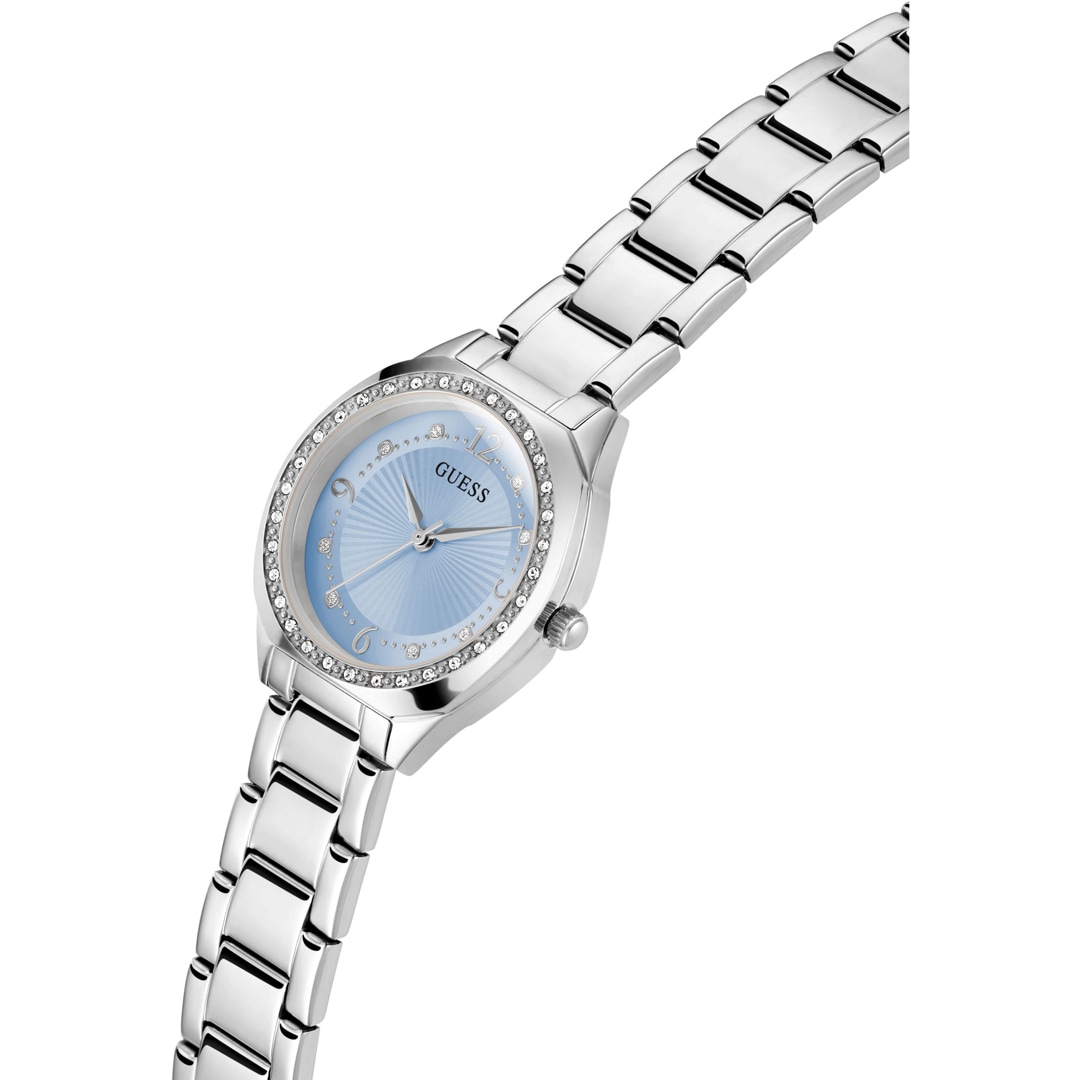 GUESS Watches versteht sich als Mode- und Lifestyle Marke, die höchsten Wert auf Design und Qualität legt. Eine Uhr von GUESS ist in erster Linie ein Mode Accessoire, das außerdem zuverlässig die Zeit anzeigt. GUESS verwirklicht permanent neue Ideen und kreiert durch das Spiel mit verschiedenen Stilrichtungen, Farben und Materialien neue Styles. Immer am Puls der Zeit, gehört GUESS Watches heute zu den tonangebenden Trendsettern in der Branche.