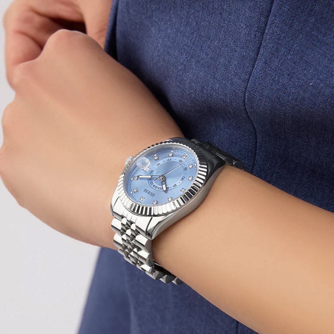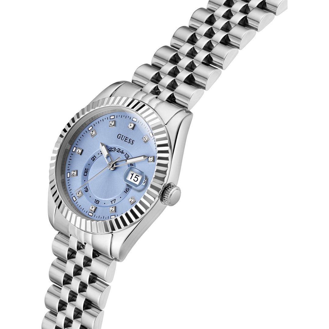 GUESS Watches versteht sich als Mode- und Lifestyle Marke, die höchsten Wert auf Design und Qualität legt. Eine Uhr von GUESS ist in erster Linie ein Mode Accessoire, das außerdem zuverlässig die Zeit anzeigt. GUESS verwirklicht permanent neue Ideen und kreiert durch das Spiel mit verschiedenen Stilrichtungen, Farben und Materialien neue Styles. Immer am Puls der Zeit, gehört GUESS Watches heute zu den tonangebenden Trendsettern in der Branche.