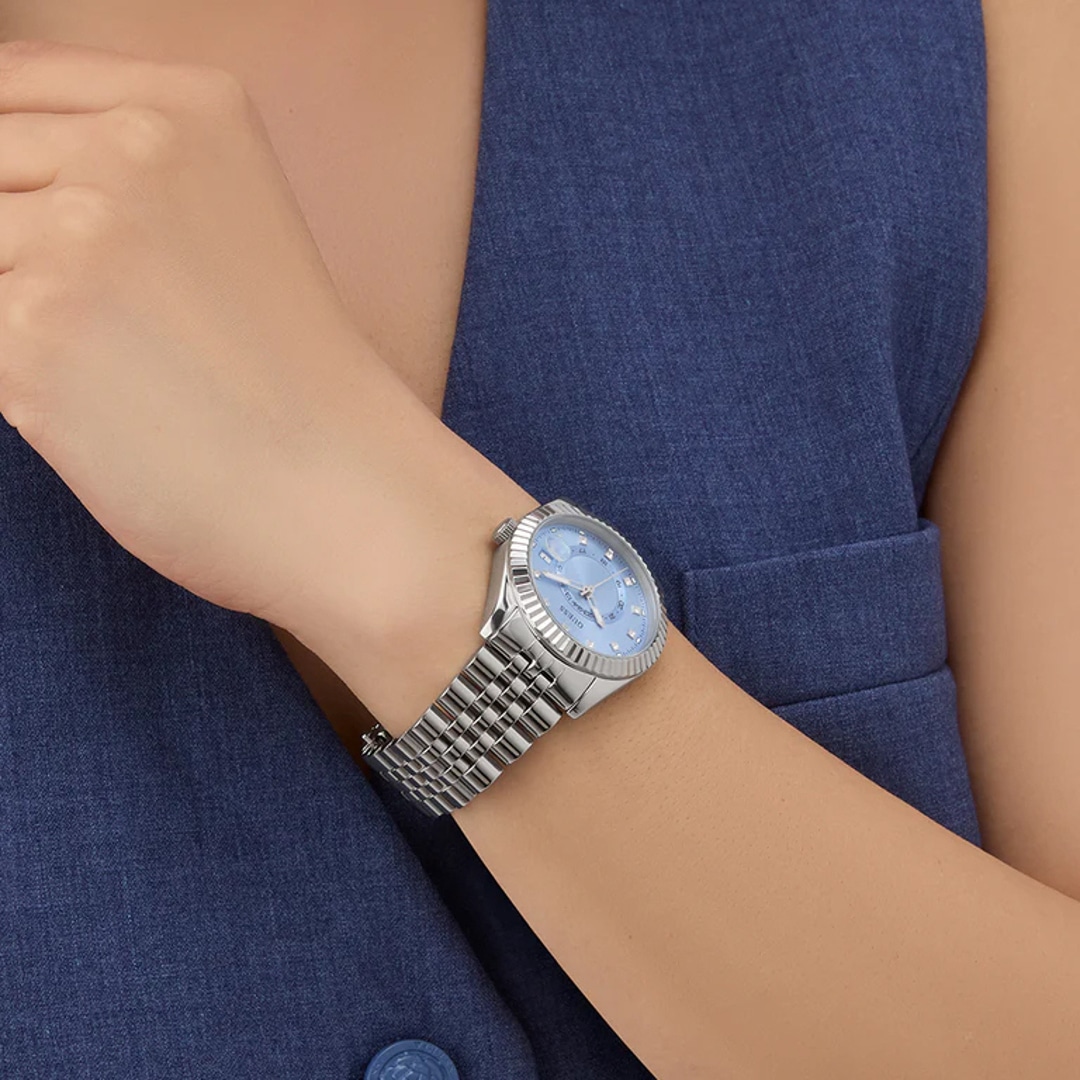 | Gehäuse Material | Edelstahl | Zifferblatt | Blau |