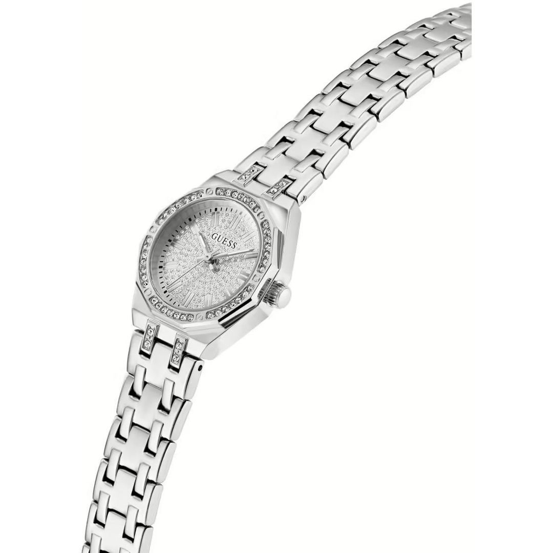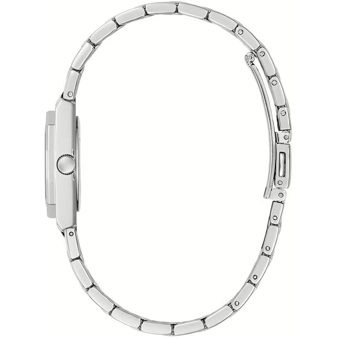 Die PIXIE von GUESS ist eine elegante Verbindung von Glamour und Zierlichkeit. Das Edelstahlgehäuse sowie das zarte Armband zeichnen das Design dieser Uhr aus. Feine Kristalle zieren Lünette, Zifferblatt und Bandanstösse dieser femininen Damenuhr. Ihre versprühen eine extra Note Charme.