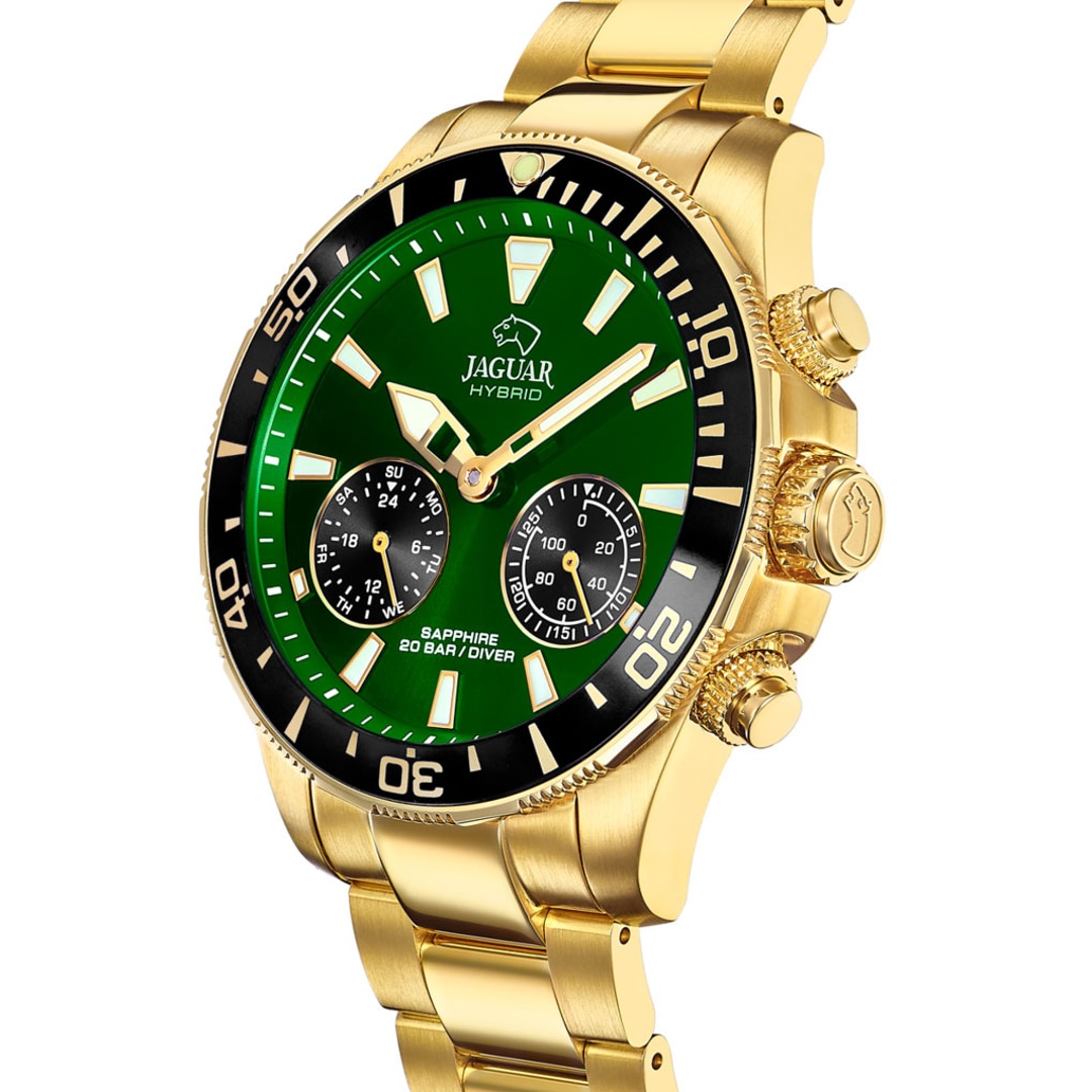 Diese JAGUAR Herrenuhr ist eine Hybriduhr. Dank der Connected-Technologie von Jaguar ist diese Uhr in der Lage, ihrem Besitzer intelligente Funktionen zu bieten.