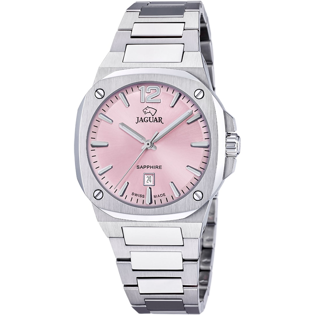 In Jaguar besteht perfekte Symbiose zwischen Kraft und Eleganz. Die Executive ist eine elegante Damenuhr aus Edelstahl. Die klare Formgebung und der elegant anmutende Stil der Jaguar Executive machen diese Uhr begehrenswert. Ihr charmantes Design entsteht durch den flüssigen Übergang wie aus einem Guss zwischen dem Armband und dem Gehäuse aus Edelstahl. Mit rosafarbenem Zifferblatt und silbernen Zeigern, bietet perfekte Ablesbarkeit dank seines Saphirglases.