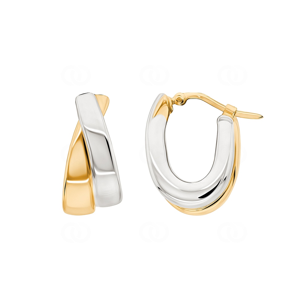Anmutig und elegant sind diese zweifarbigen, elektrogeformten Creolen aus 18 Karat Gelb- und Weissgold mit Clip-Verschluss. Ein exklusives und originelles Accessoire, das Ihren Stil aufwertet und für jede Situation geeignet ist!