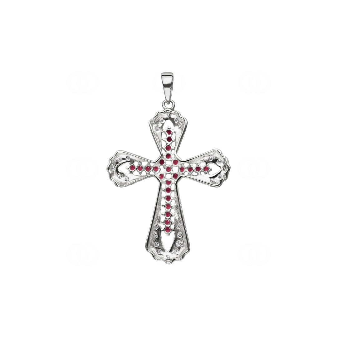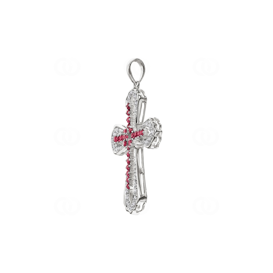 Kreuzanhänger 750/18 K Weissgold mit Rubinen & Diamanten 0.15 ct H/si