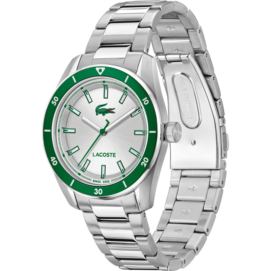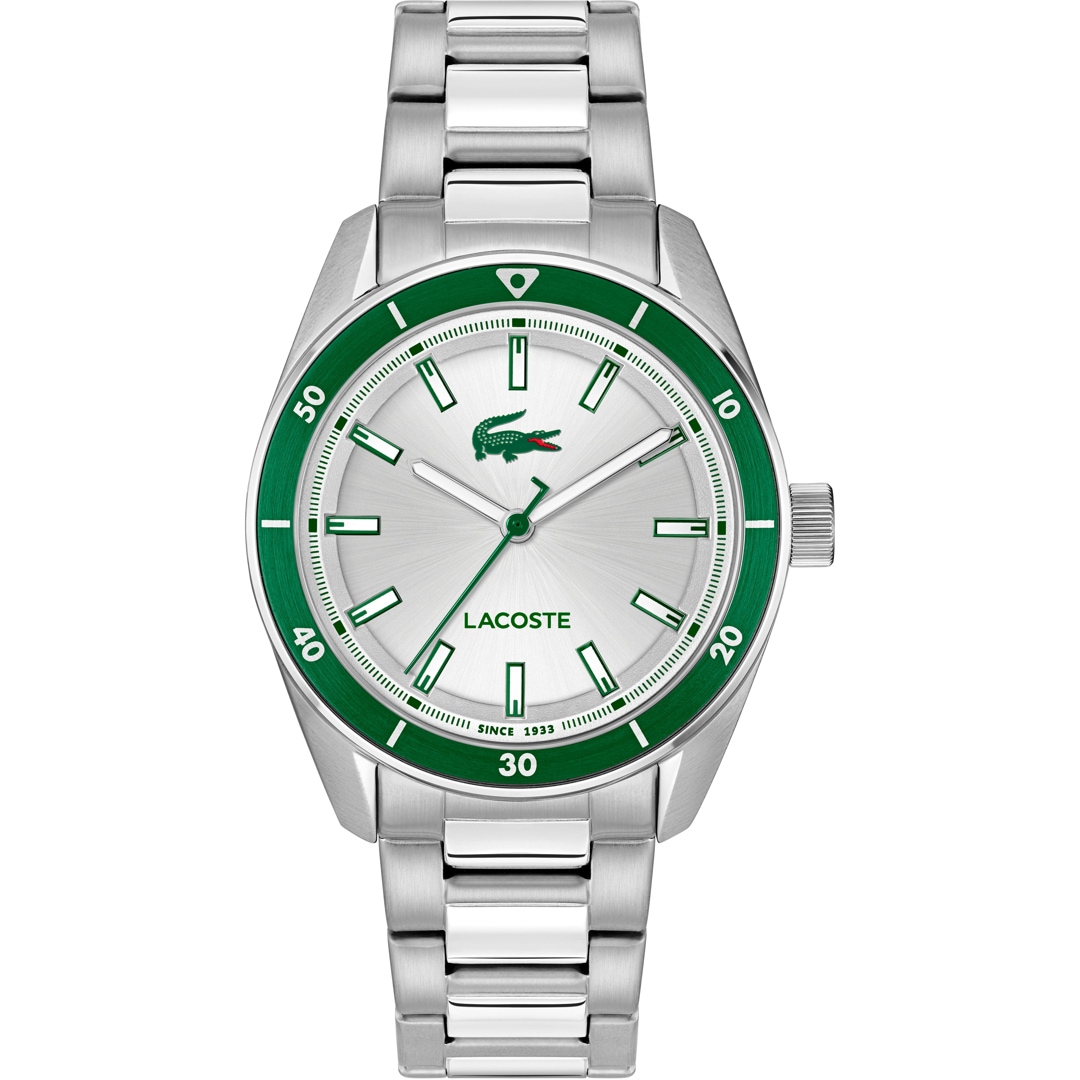 Die Lacoste Uhren aus Frankreich zeichnen sich durch polierte oder matte Edelstahlgehäuse aus. Die dezent gehaltenen Gehäuse aus Edelstahl sowie die klassischen Zifferblätter der Uhren repräsentieren Stilsicherheit. Geniessen Sie mit den Uhren die bekannte Leichtigkeit von Lacoste. Unverwechselbar ist auch das Markenzeichen. Das grüne Krokodil ziert jedes Zifferblatt und ermöglicht eine eindeutige Klassifizierung jedes Modells als Lacoste-Uhr. Die Uhren für Damen und Herren sind das perfekte Accessoire zu einem sportlichen Outfit.