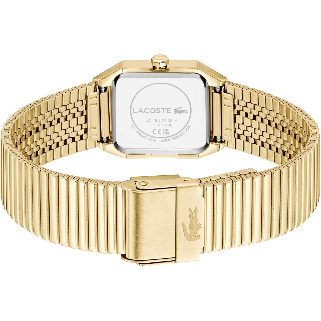 Die Lacoste Uhren aus Frankreich zeichnen sich durch polierte oder matte Edelstahlgehäuse aus. Die dezent gehaltenen Gehäuse aus Edelstahl sowie die klassischen Zifferblätter der Uhren repräsentieren Stilsicherheit. Geniessen Sie mit den Uhren die bekannte Leichtigkeit von Lacoste. Unverwechselbar ist auch das Markenzeichen. Das grüne Krokodil ziert jedes Zifferblatt und ermöglicht eine eindeutige Klassifizierung jedes Modells als Lacoste-Uhr. Die Uhren für Damen und Herren sind das perfekte Accessoire zu einem sportlichen Outfit.
