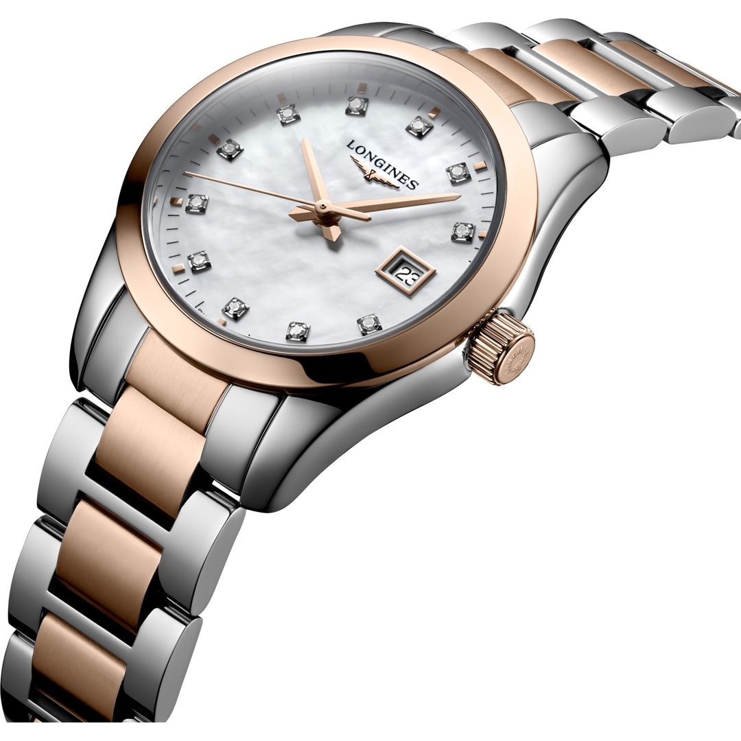 Die Conquest Classic von Longines verbindet Modernität gekonnt mit der Raffinesse, die die Marke ausmacht. Elegant und schlank: Die neueste Kreation dieser Linie ist sowohl feminin als auch mutig und zeitgemäss. Entworfen, um das tägliche Tempo der modernen Frau zu bestimmen, wird sie besonders die Frauen begeistern, die es verstehen, die vielen Facetten ihres Lebens meisterhaft miteinander zu verweben.