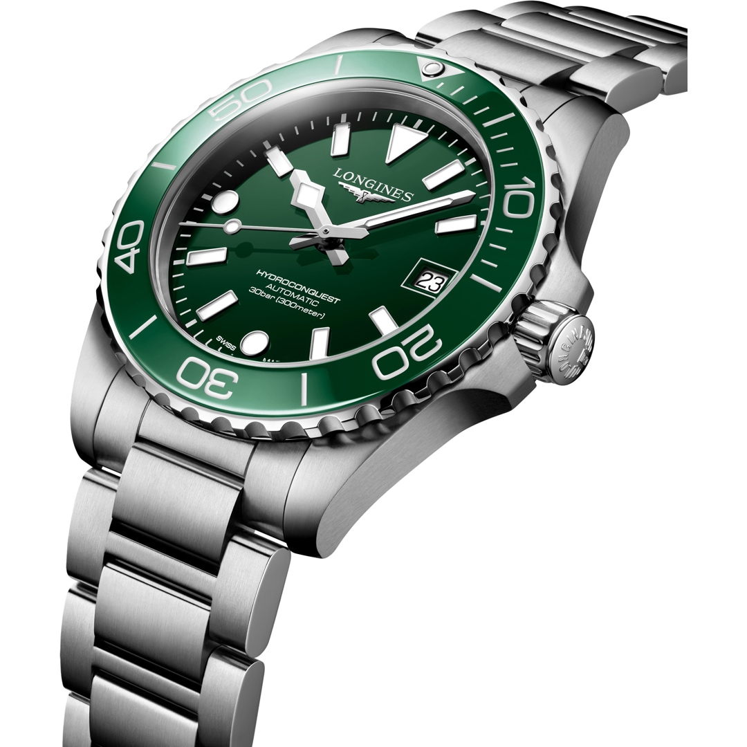 Die HydroConquest Kollektion vereint moderne Ästhetik mit nachweislicher Leistung. Angetrieben von einem exklusiven Longines Kaliber, wasserdicht bis zu 30 bar (300 m), mit einseitig drehbarer Lünette, verschraubter Krone und verschraubtem Gehäuseboden.