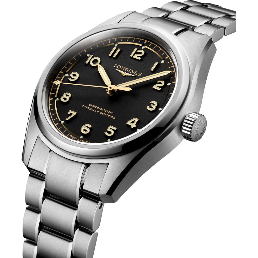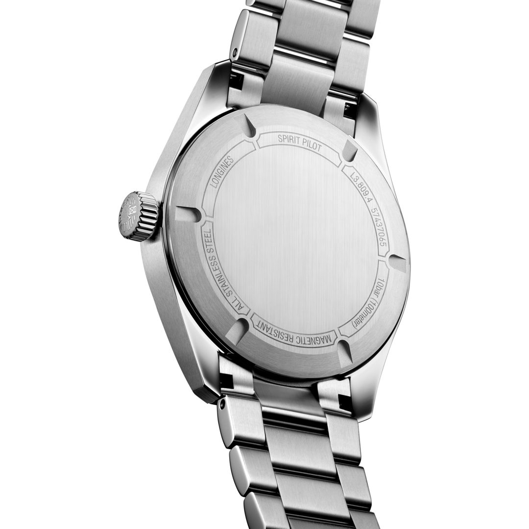 Die Longines Spirit Pilot verfügt über ein neu gestaltetes Edelstahlgehäuse mit 39 mm Durchmesser, dessen verbesserte Ergonomie und raffinierte Ästhetik höchsten Tragekomfort und eine erlesene Optik bieten.