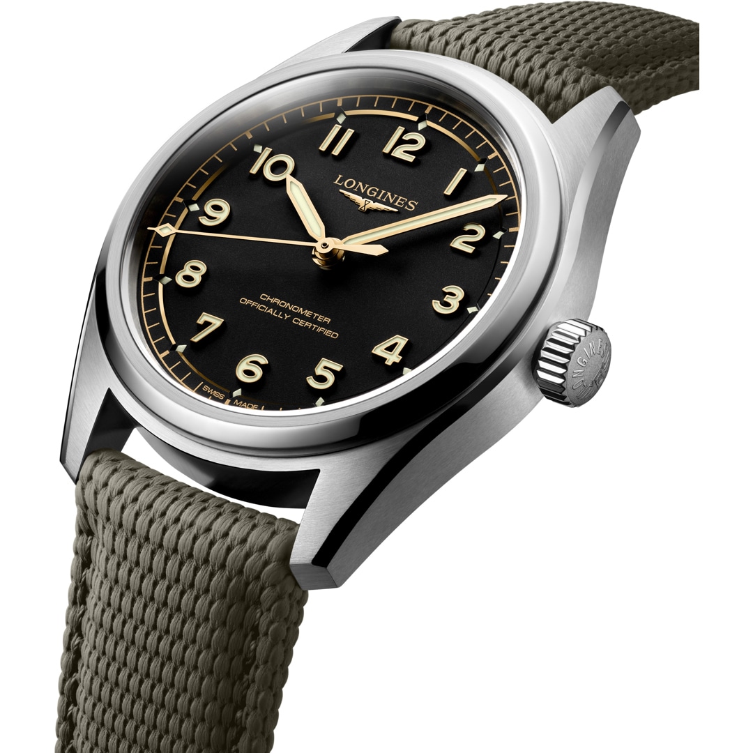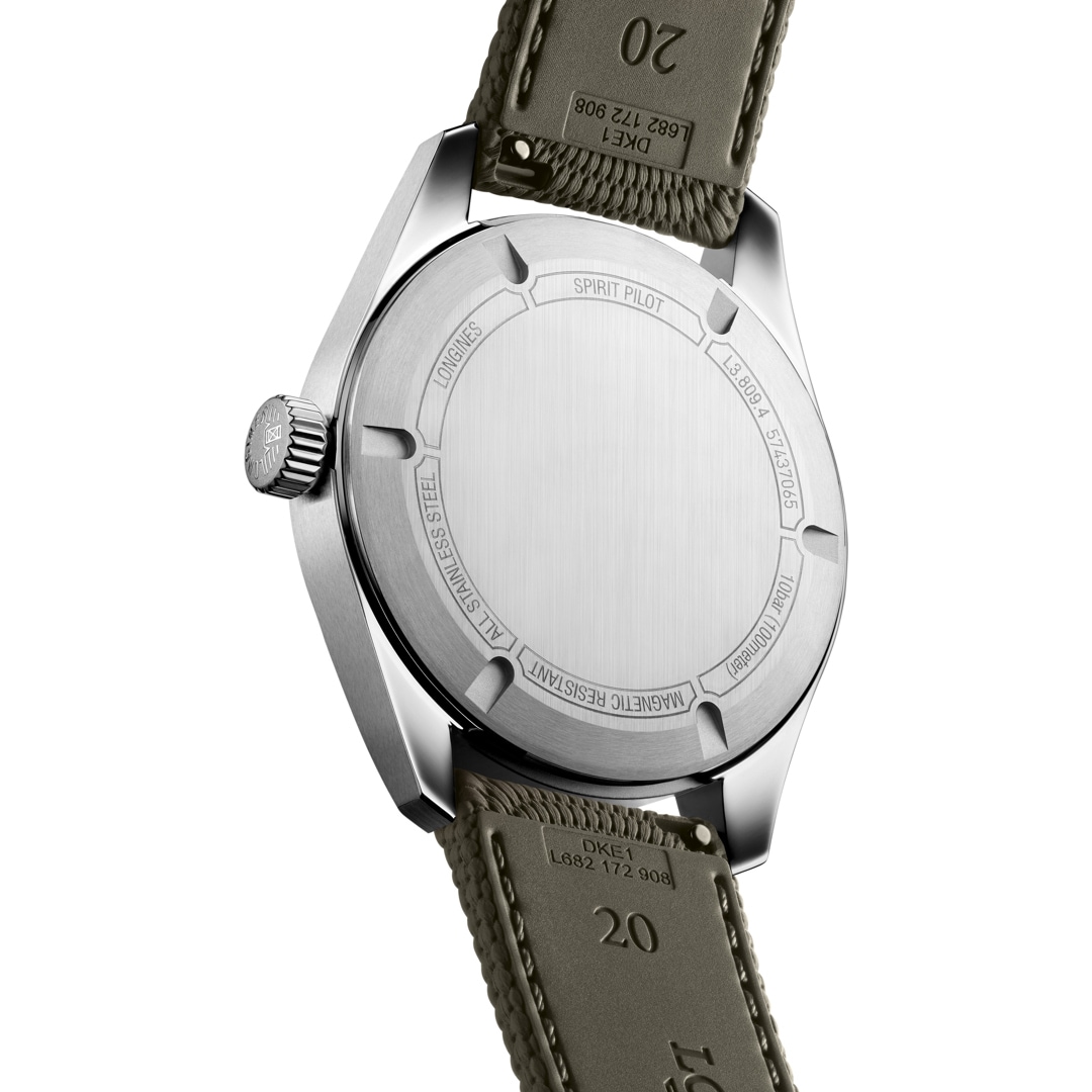 Die Longines Spirit Pilot verfügt über ein neu gestaltetes Edelstahlgehäuse mit 39 mm Durchmesser, dessen verbesserte Ergonomie und raffinierte Ästhetik höchsten Tragekomfort und eine erlesene Optik bieten.