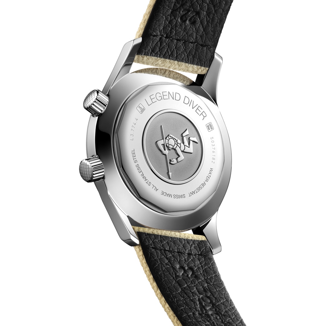 Die jüngsten Versionen von The Longines Legend Diver Watch bewahren den Esprit und die klaren Linien des Originalmodells und profitieren zugleich von der uhrmacherischen Kompetenz der Marke. Die Uhren verfügen über zeitgemässe technische Eigenschaften, wie Saphir-Boxglas, zwei verschraubte Kronen und einen verschraubten Boden für Wasserdichtigkeit bis 300 m oder auch ein Automatikuhrwerk mit Siliziumspiralfeder, das exklusiv für Longines gefertigt wird.