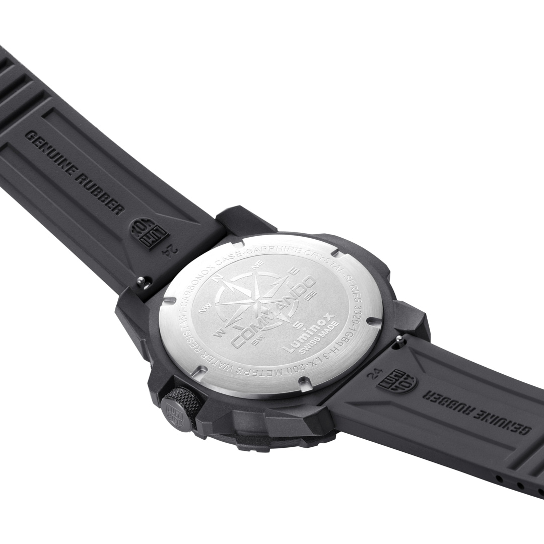 Um das militärische Thema zu vervollständigen, ist die Schriftart der Commando Raider den allgegenwärtigen Militärstempeln nachempfunden. Der grüne Kompasseinsatz auf der Lünette besteht aus eloxiertem Aluminium, welches Luminox als "Night Vision Green" bezeichnet, da es derselben Farbe entspricht, welche man sieht, wenn man die Welt durch eine Nachtsichtbrille betrachtet.