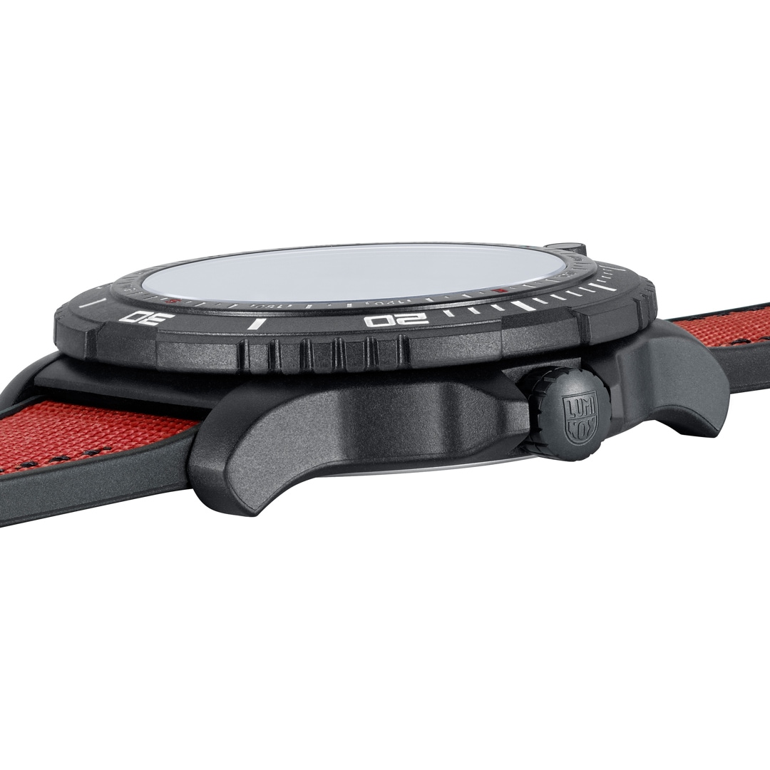 Diese limitierte ICE-SAR 1080 Uhr ist von Islands härtesten Rettungseinsätzen inspiriert und für extremste Bedingungen konzipiert. Die markante Sonderedition mit rotem Armband und gleichfarbigen, äusserem Ziffernblattring ist weltweit auf nur 874 Stück limitiert, um an das Jahr 874 n. Chr. zu erinnern, als die ersten Siedler in Island ankamen. Mit ihrem 45 mm CARBONOX™-Gehäuse ist diese Swiss Made, taktische Uhr ultraleicht und dennoch aussergewöhnlich robust. Ihr strukturiertes schwarzes Zifferblatt und das Saphirglas mit Antireflexbeschichtung gewährleisten eine gute Ablesbarkeit in jeder Umgebung. Fünfzehn Luminox Light Technology (LLT)-Röhren sorgen für eine konstante Sichtbarkeit von bis zu 25 Jahren – unverzichtbar in völliger Dunkelheit. Angetrieben von einem Schweizer Quarzwerk RONDA, wasserdicht bis 200 Meter und ausgestattet mit einer Pulsmessskala, liefert dieser robuste Zeitmesser Präzision unter Druck. Das Armband mit Textilfinish rundet das robuste Design ab, das auf Widerstandsfähigkeit, Zuverlässigkeit und Abenteuer ausgelegt ist – immer sichtbar, immer einsatzbereit.