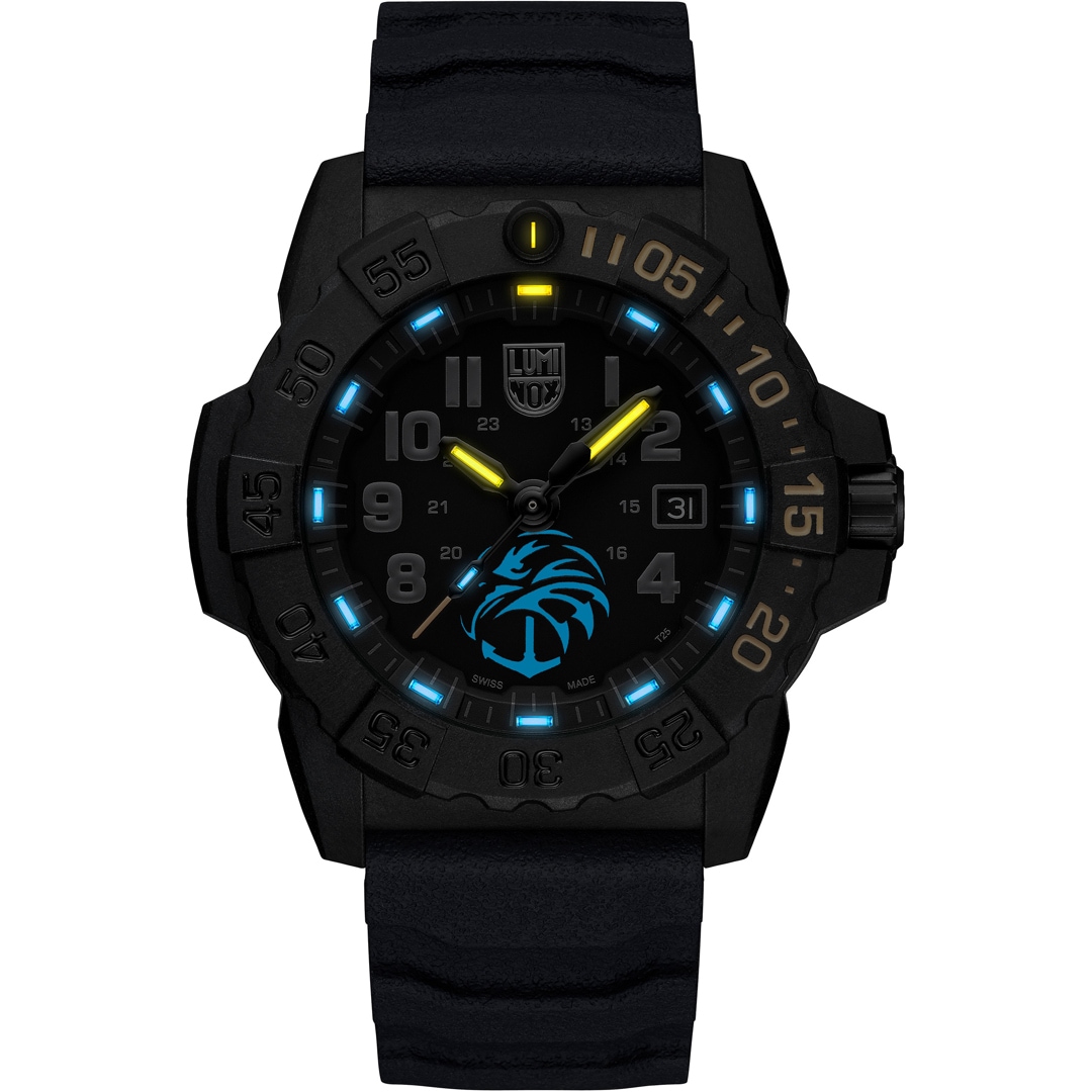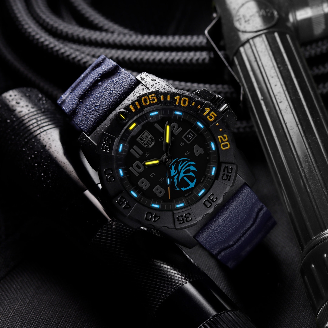 Die Uhr „The Guardian“ ist eine limitierte Edition, die zu Ehren der Navy SEAL Foundation geschaffen wurde. Sie soll das Leben derjenigen würdigen und unterstützen, die gedient haben, und deren Einsatz sichtbar machen. Bei 6 Uhr ist das Logo der Navy SEAL Foundation mit Super-LumiNova® beschichtet, das im Dunkeln hell leuchtet und als Symbol für Orientierung und Hoffnung in schwierigen Zeiten dient. Die Uhr verfügt über ein leichtes und dennoch extrem widerstandsfähiges 45 mm CARBONOX™-Gehäuse, eine einseitig drehbare Lünette und ein Schweizer Quarzwerk für zuverlässige Leistung unter anspruchsvollen Bedingungen. Die Luminox Light Technology (LLT) gewährleistet eine konstante Ablesbarkeit bei jedem Licht für bis zu 25 Jahre. Diese einzigartige Uhr ist weltweit auf 961 Stück limitiert und erinnert damit an das Jahr 1961, in dem die US Navy SEAL Teams offiziell gegründet wurden.