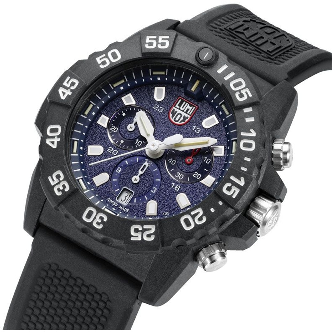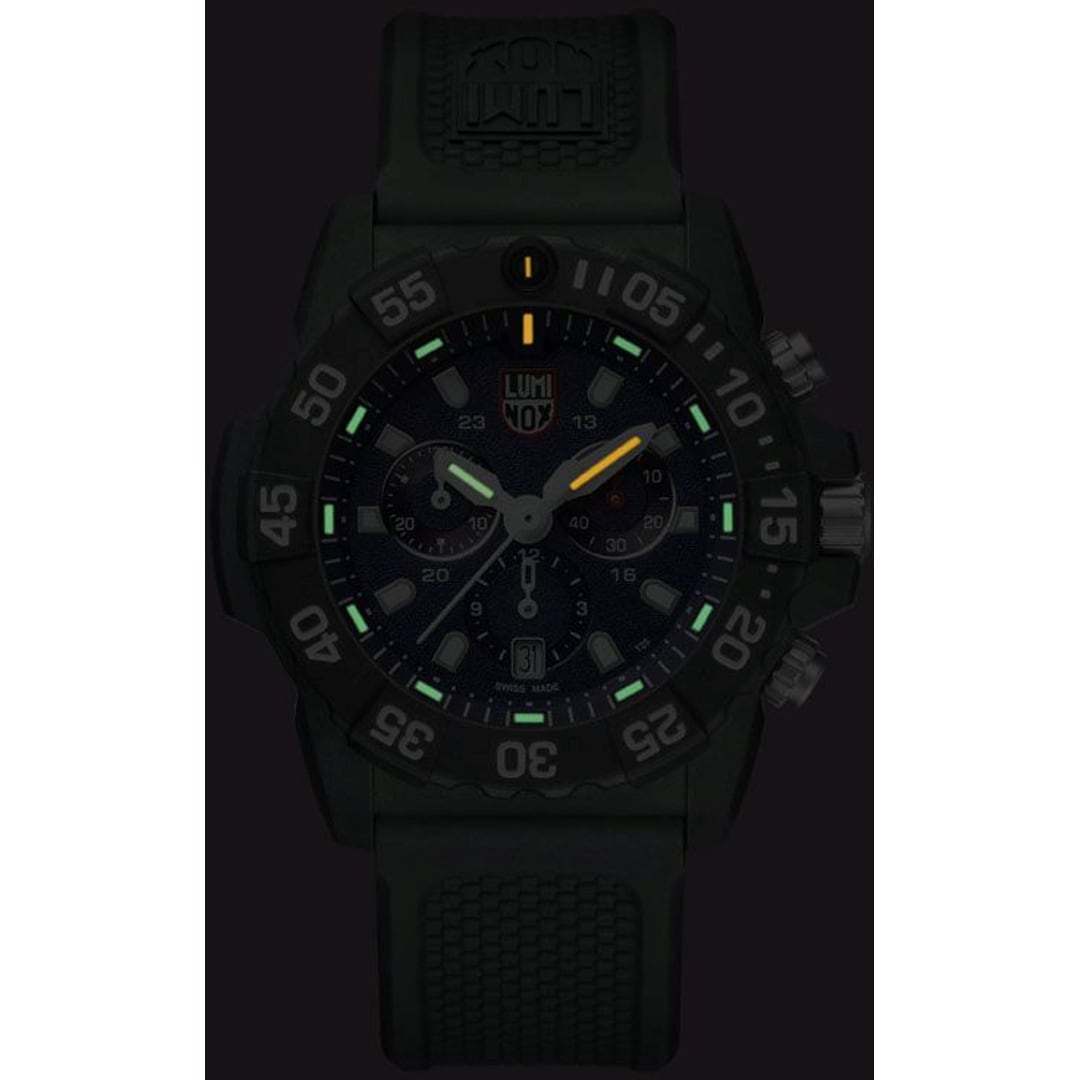 Der Luminox Navy Seal Chronograph besticht durch sein Design, seine Wasserdichtigkeit bis zu 20 ATM und das verwendete Ronda Quarzuhrwerk. Hinzu kommt das aussergewöhnliche H3-Lichtsystem der Schweizer Firma mb-microtec. Die stromunabhängige Beleuchtung (bis zu 100x heller als herkömmliche Uhrenbeleuchtungssysteme) zeigt die Zeit auf einen Blick an - unabhängig von den Lichtverhältnissen, ohne vom Tageslicht aufgeladen zu werden, ohne eine Taste zu drücken. Das Gehäuse und die unidirektionale drehbare Lünette werden von CARBONOX™ hergestellt. Dieses Material ist ein innovatives Kohlenstoff-Verbundmaterial und ein Markenzeichen von Luminox. Luminox-Uhren halten dank ihrer hochwertigen Technologie und Langlebigkeit den härtesten Bedingungen stand und werden weltweit eingesetzt: Die U.S. Navy SEALs und andere internationale Eliteeinheiten vertrauen Luminox. Luminox-Uhren begleiten jedes Abenteuer und sorgen dafür, dass Sie zur richtigen Zeit am richtigen Ort sind.