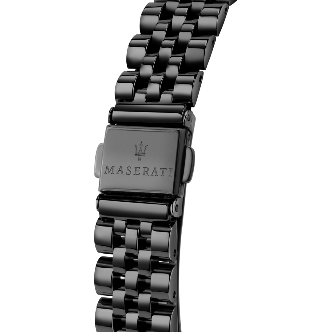 Die Uhr beinhaltet ein hochwertiges Solarwerk. Der majestätische Dreizack von Maserati setzt diesem unvergleichbaren Zifferblatt das Sahnehäubchen auf! Das leichte Edelstahlband sorgt für hohen Tragekomfort und schmiegt sich perfekt um Ihr Handgelenk. Mit einer Wasserdichte von 5 ATM ist Ihr neuer Begleiter auch vor alltäglicher Wassereinwirkung besten geschützt.