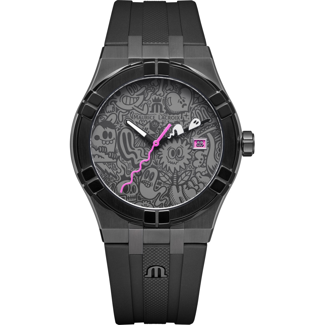 Kunst für das Handgelenk: Diese Maurice Lacroix Aikon, entstanden in fortlaufender Zusammenarbeit mit dem britischen Künstler WOTTO (Craig Watkins), verwandelt Ihr Handgelenk in eine tragbare Galerie für Miniaturkunst.