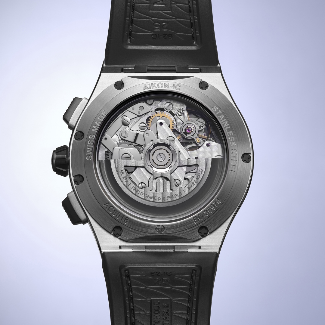 Im Inneren schlägt ein skelettiertes Chronographenwerk, dessen faszinierende Mechanik durch das aufwendig gestaltete Zifferblatt kunstvoll inszeniert wird. Jedes Detail, von den präzise gefertigten Zahnrädern bis zu den schimmernden Rubinen, zeugt von höchster Uhrmacherkunst und Leidenschaft. Das robuste Gehäuse und die ikonische Lünette der AIKONIC-Linie werden durch moderne Materialien und makellose Verarbeitung akzentuiert, die sowohl Stärke als auch Raffinesse ausstrahlen.