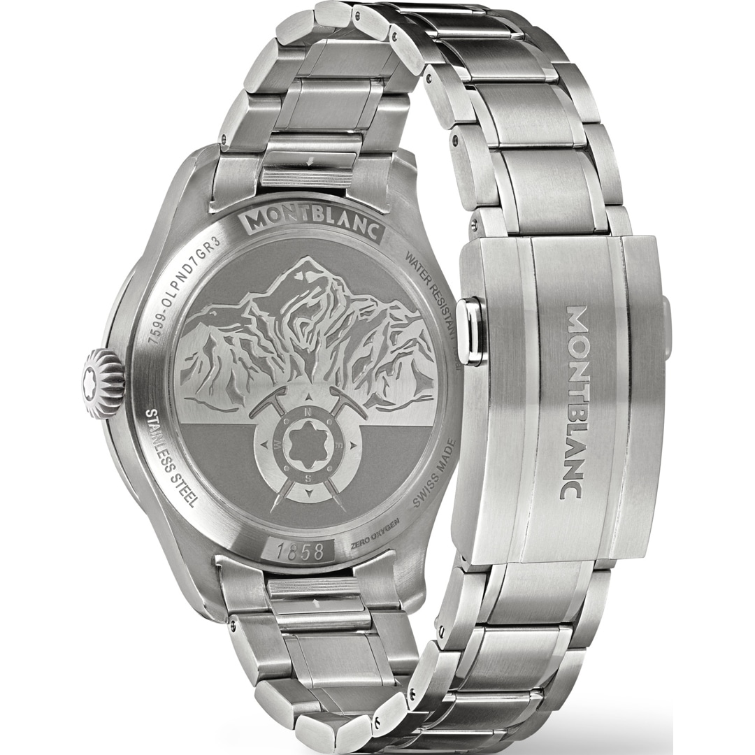 | Verschluss | Faltschliesse | Weitere Details | Sauerstofffreies Edelstahlgehäuse, Gravur „Spirit of Mountain Exploration“ |