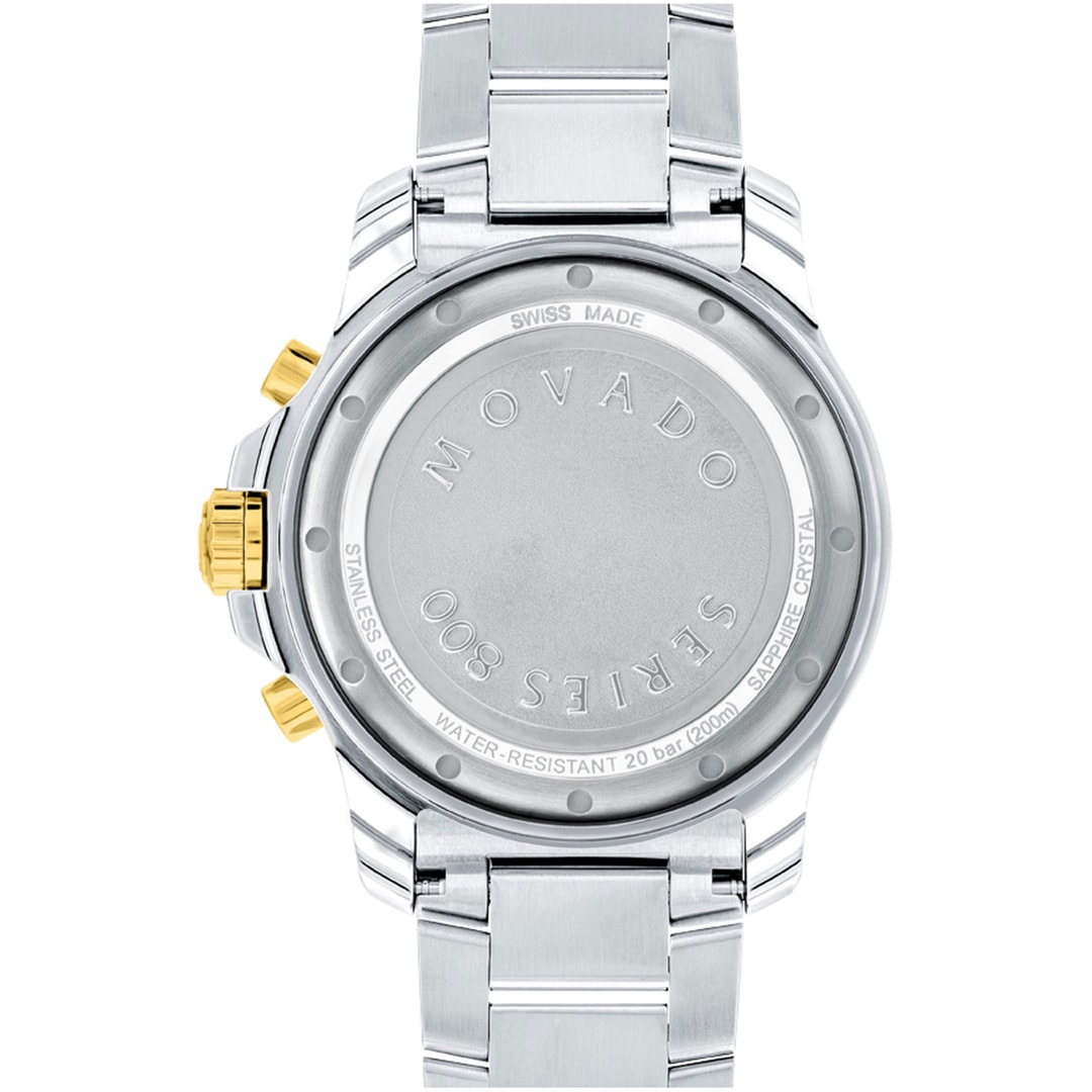 Die Movado Series 800 setzt neue Masstäbe in puncto Design und technischer Raffinesse. Dieser Herrenchronograph im sportlichen Design hat neben der Stoppuhr auch eine klassische Datumsanzeige bei 4 Uhr. Das Gehäuse aus hochwertigem Edelstahl beherbergt ein zuverlässiges Schweizer Quarzwerk. Das Zifferblatt und das Armband harmonieren perfekt miteinander. Natürlich darf auch der charakteristische Movado-Punkt bei dieser Herrenuhr nicht fehlen. Der Chronograph ist wasserdicht bis zu 20 bar / 200m und hat eine verschraubte Edelstahlkrone. Sportlicher Luxus und immer im Trend - so präsentiert sich die Movado Series 800!