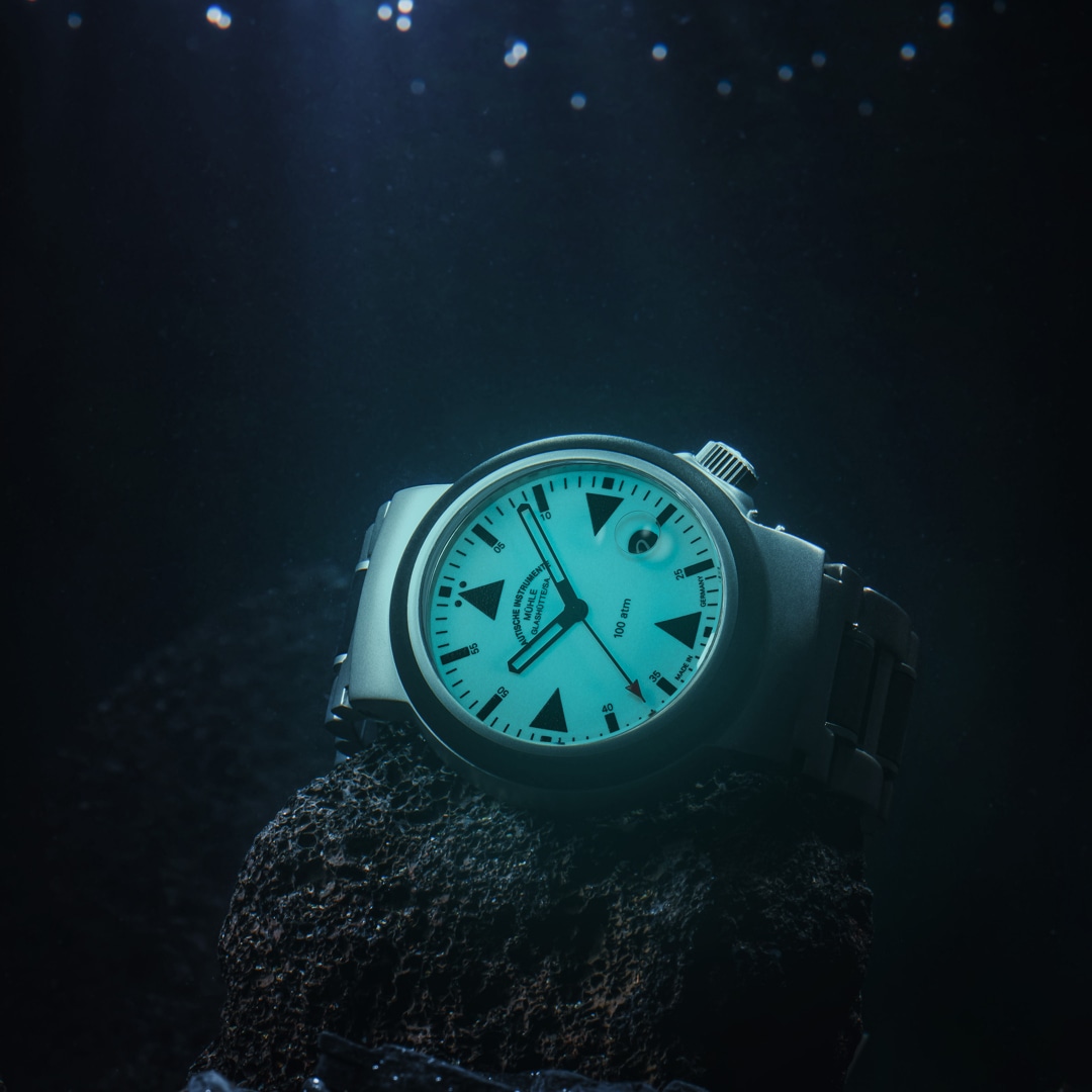 Machen Sie die tiefste Nacht zum helllichten Tag. Mit dieser leuchtenden Variante des berühmten S.A.R. Rescue Timer präsentiert Mühle Glashütte eine Einsatzuhr für wahrhaft extreme Bedingungen. Das absolute Highlight dieses Modells ist das vollständig mit Leuchtmasse beschichtete Zifferblatt. Darauf heben sich die schwarz lackierten und filigran skelettierten Zeiger bei Dunkelheit unübersehbar ab. So geniessen Sie rund um die Uhr eine unvergleichliche Orientierung. Darüber hinaus bietet dieser kompromisslose Zeitmesser die bewährte Robustheit der echten Seenotretter. Ein erstaunlich massives Saphirglas von vier Millimetern Dicke und die markante weiche Kautschuklünette trotzen spielend einem gewaltigen Wasserdruck von 100 Bar. Erleben Sie höchste mechanische Zuverlässigkeit gepaart mit maximaler Widerstandsfähigkeit dank der hauseigenen Spechthalsregulierung.